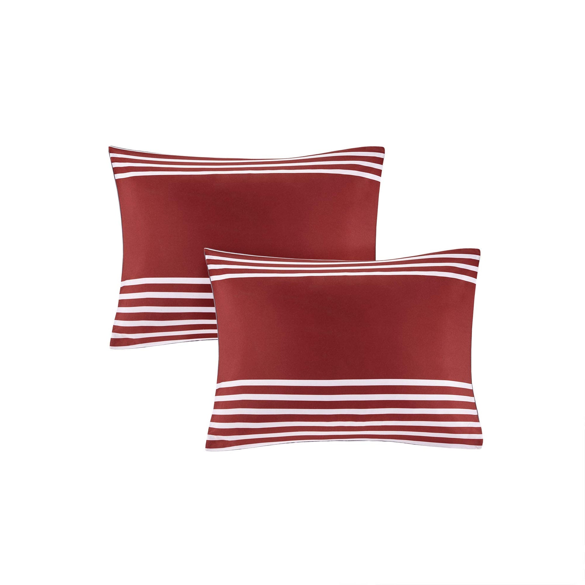 Size Full Included Components 1 Full Size Comforter, 2 Shams,1 Flat Sheet,1 Fitted Sheet,2 Pillow Case,2 Bonus Pillow Case Color Colin Stripes Red/Grey Age Range (Description) Youth