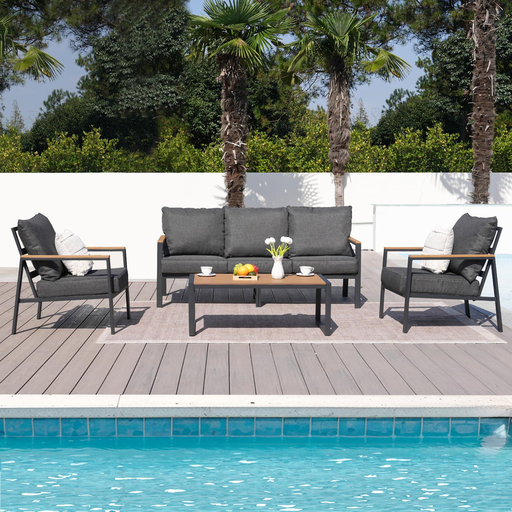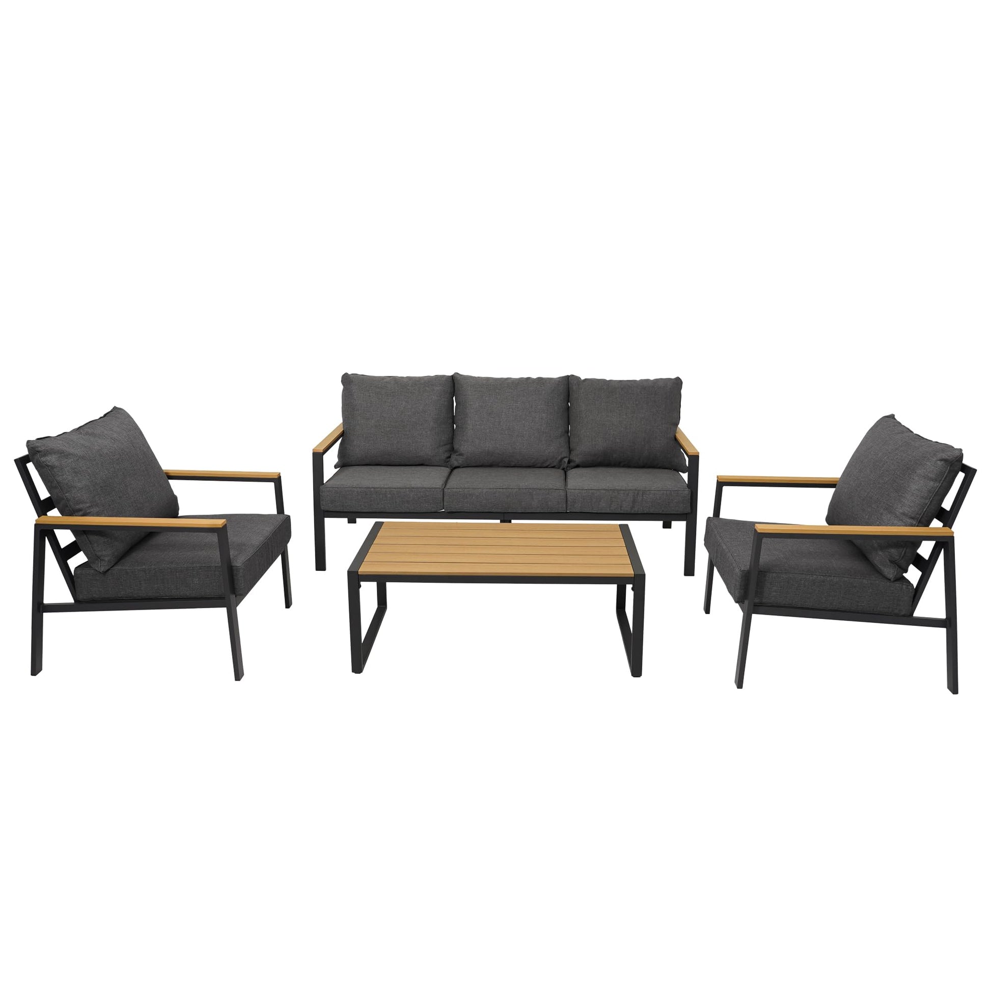 - 5” Thick Deep Seating Cushion:The outdoor furniture set is padded with upgraded fillings, providing good support and maintain shape after use. The fabric on the cushions is removable and washable. Also the cushions have the Velcro to keep them from sliding around