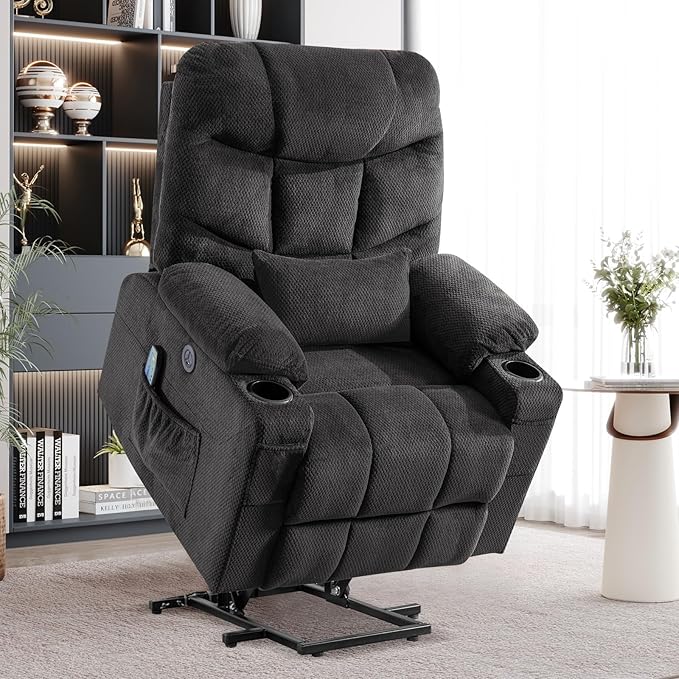 - 4 Side Pockets and Usb Charging: The power lift recliner has a USB port on the side of the arm, which can charge your device. In addition to the two large pockets on the side, we have also designed two small pockets in front of the arm to place small items within reach and have enough storage space. Two cup holders can hold glasses or drinks. Note: USB port is only applicable to low-power devices, such as iPhone and iPad