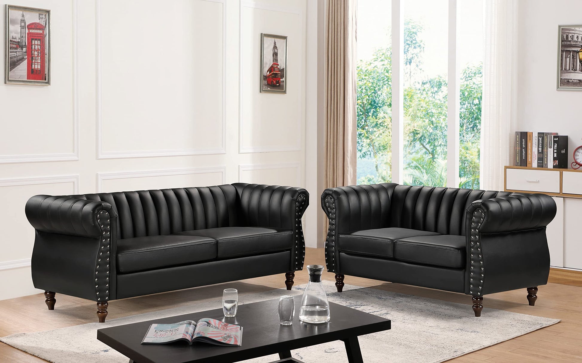 - STURDY GOURD LEGS: The black leather couch is supported by solid gourd-shaped legs, adding stability and a touch of uniqueness to your living room or office