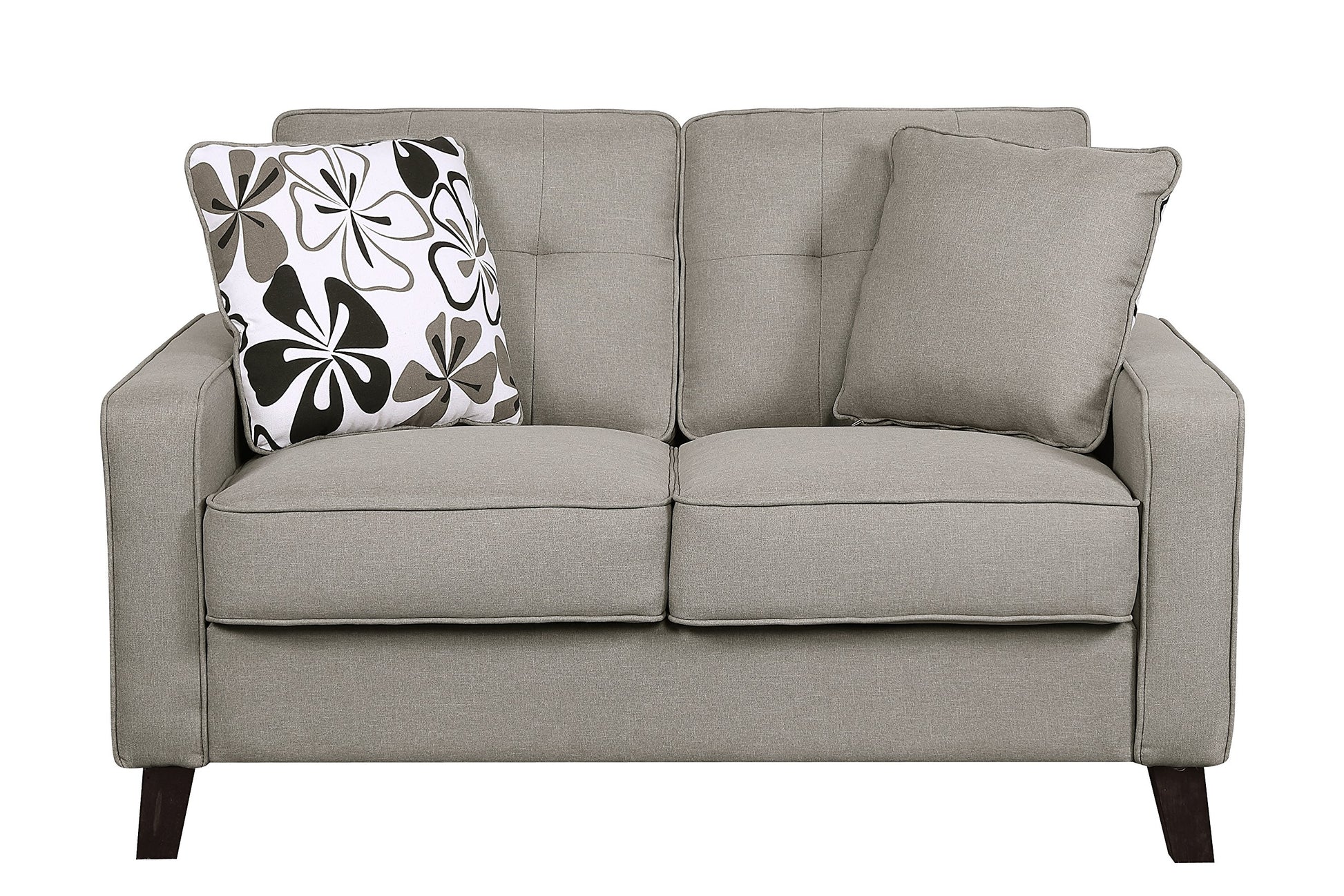 Lillana Linen Upholstered Mid-Century Modern Tufted Loveseat with Two Accent Pillows, Light Coffee Brown