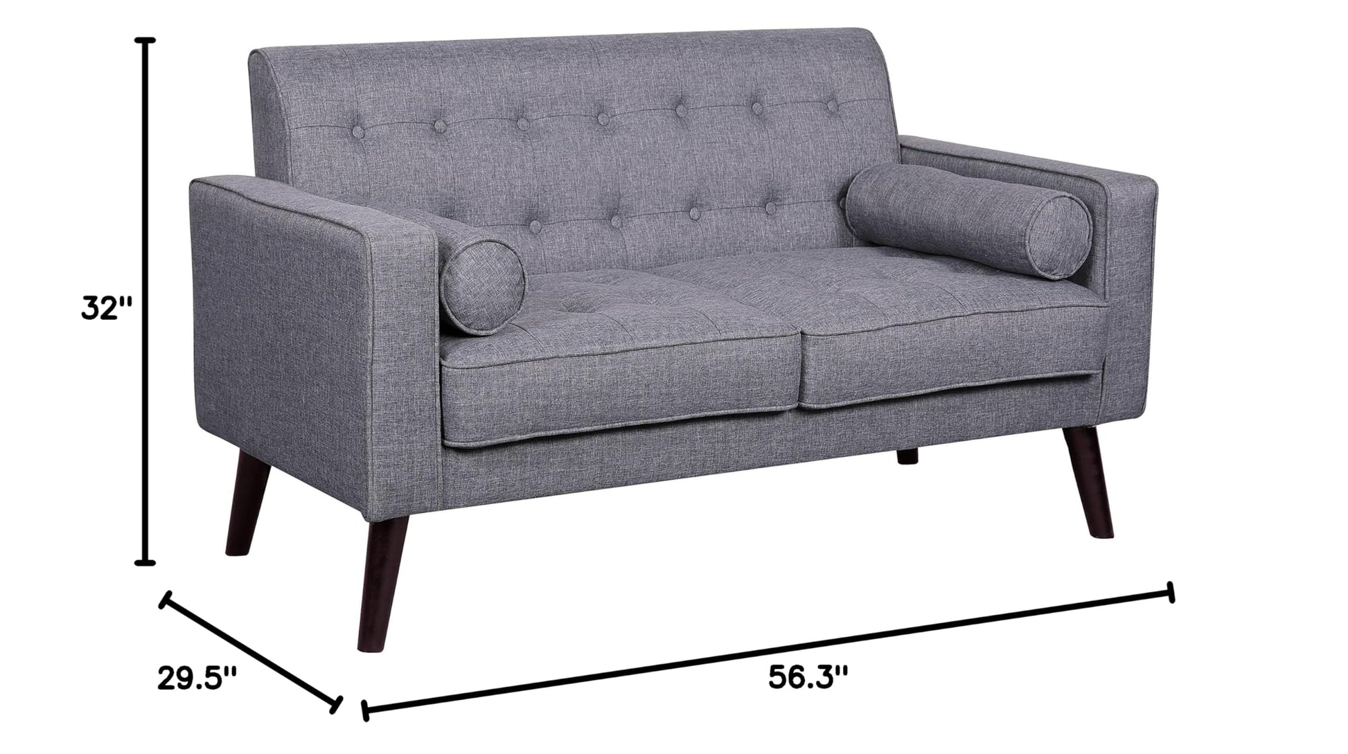 - This Modern Upholstered Sofa Measures 56.3"L x 29.5"W x 32"H and Weighs 60.64 lbs With Easy Assembly