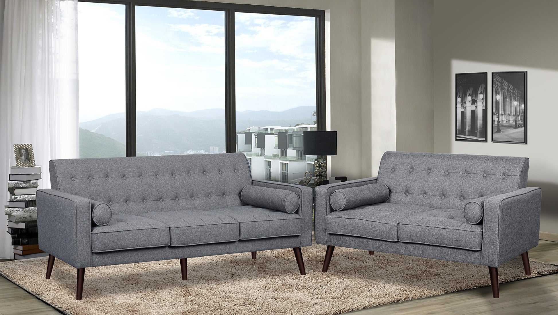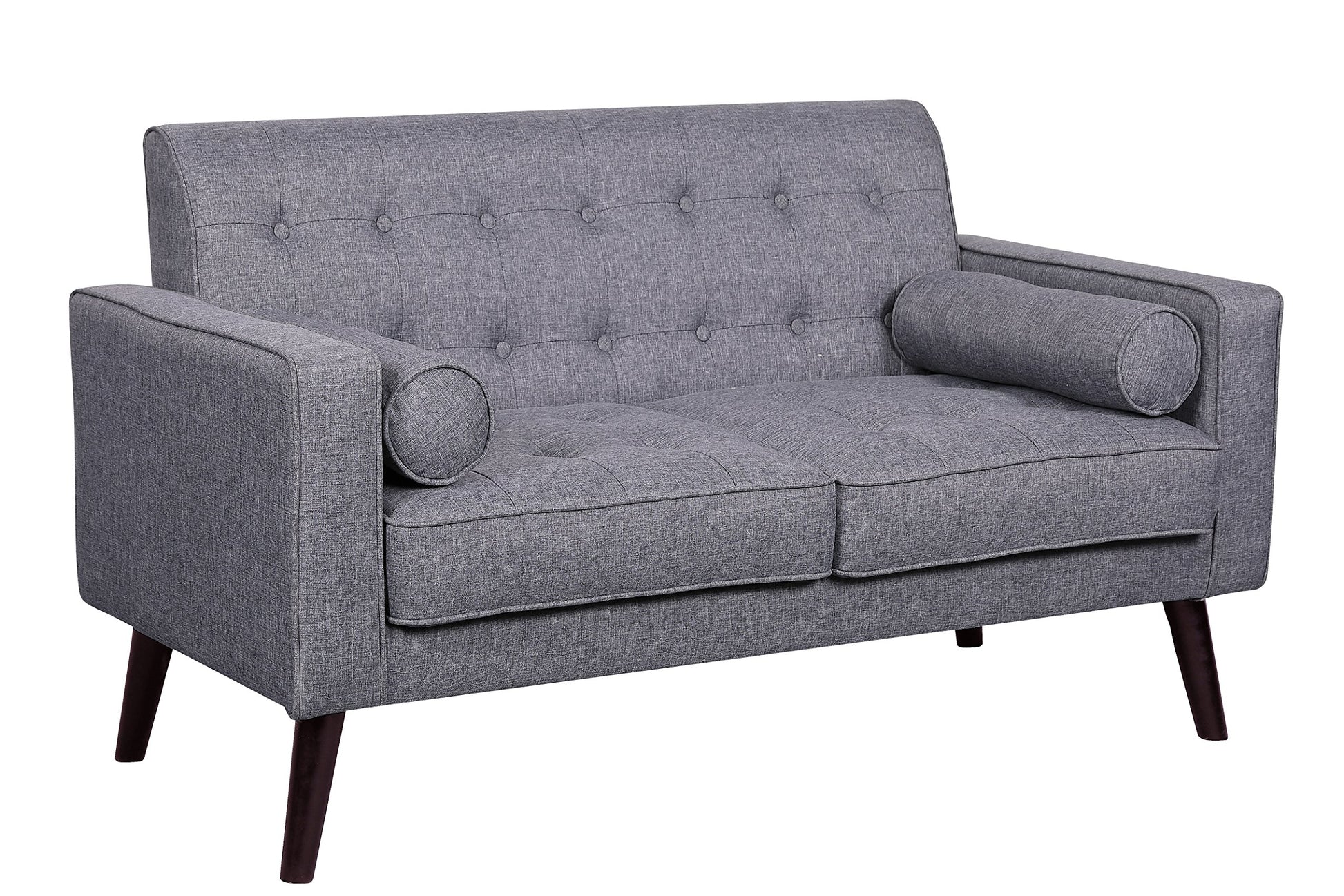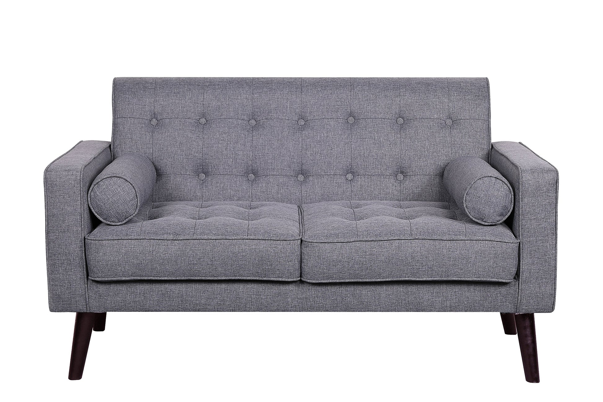- Mid Century Look: The Rounded Legs, Button Tufted and 2 Included Accent Pillows Combine to Create an Elegant Modern Sofa Certain to Add Charm to Your Décor