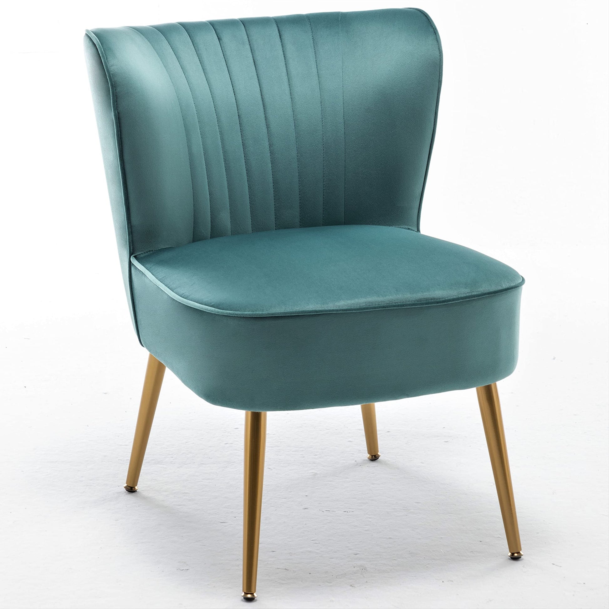 Modern Velvet Accent Chair for Living Room, Bedroom, or Entryway, Stylish and Comfortable Armless Design with Metal Legs, Teal