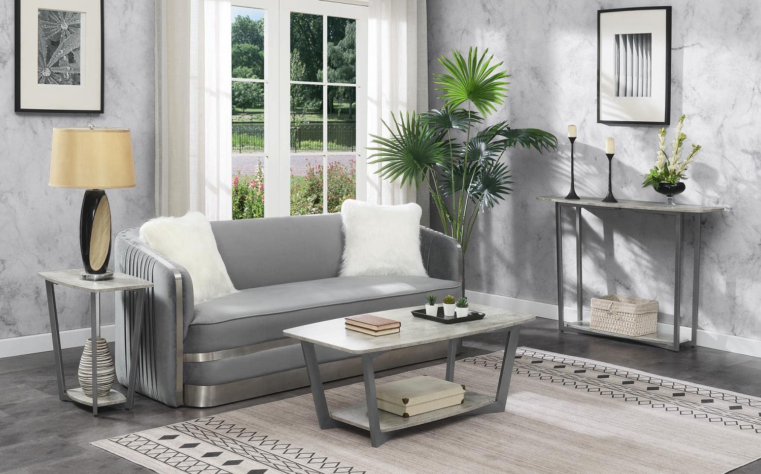 Graystone End Table with Shelf, Faux Birch/Slate Gray