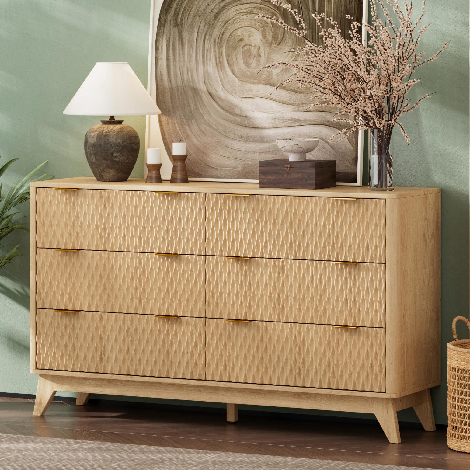 Diamond-Fluted 6 Drawers Dresser, Modern Dressers & Chests of Drawers