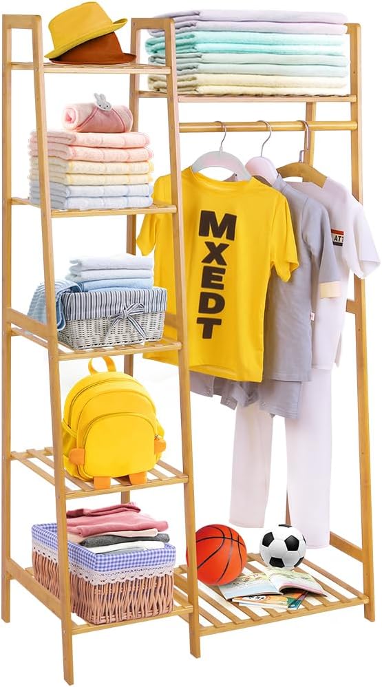 - 6.6lbs,Portable and EASY to MOVE at wil. Hanging pajamas and dirty clothes in the BEDROOM ; Organize daily changed clothes in the ENTRYWAY for convenient take ; In BATHROOM for bathing supplies ,towels,clothes,scuff storage; Help kids toddler dress up storage clothes independently at home