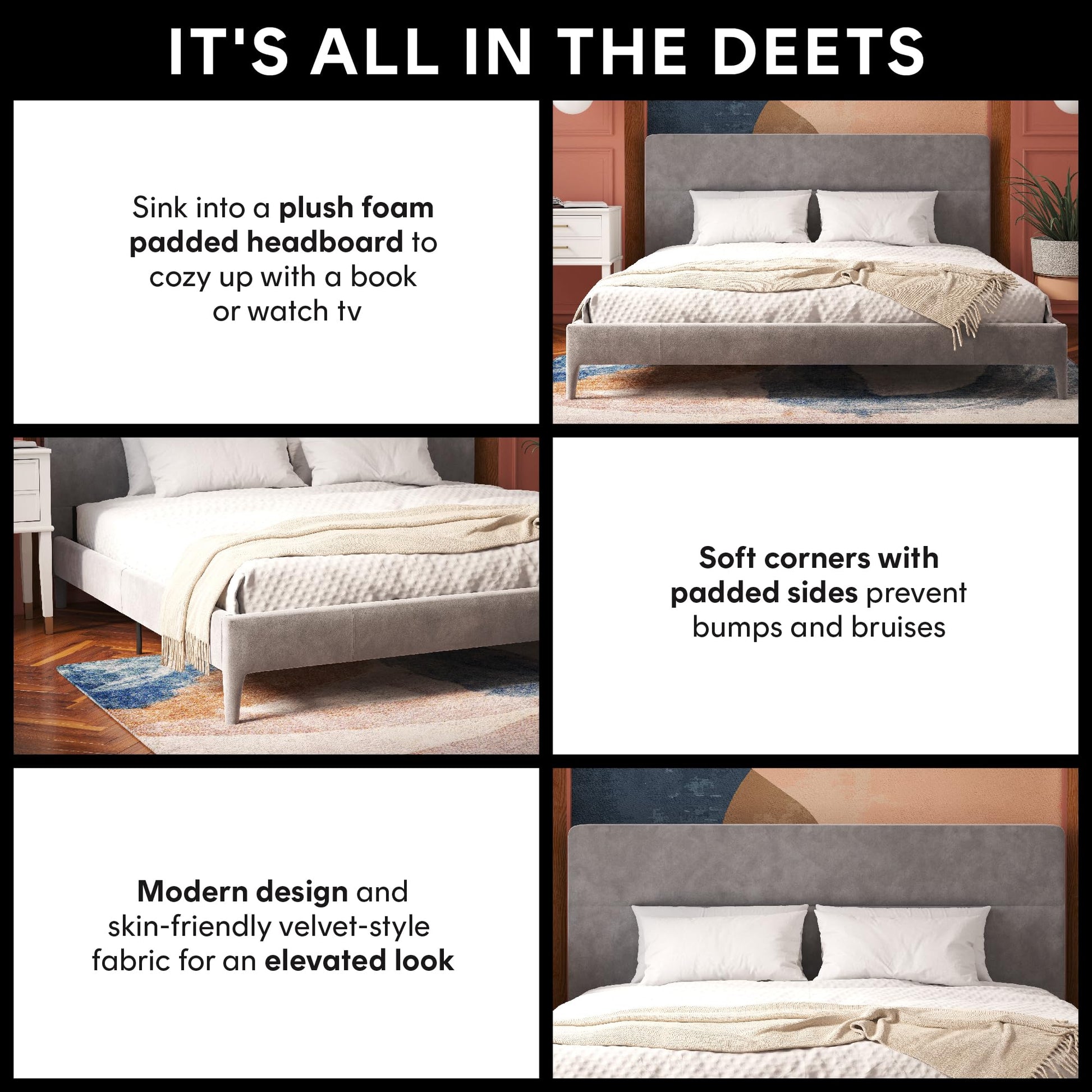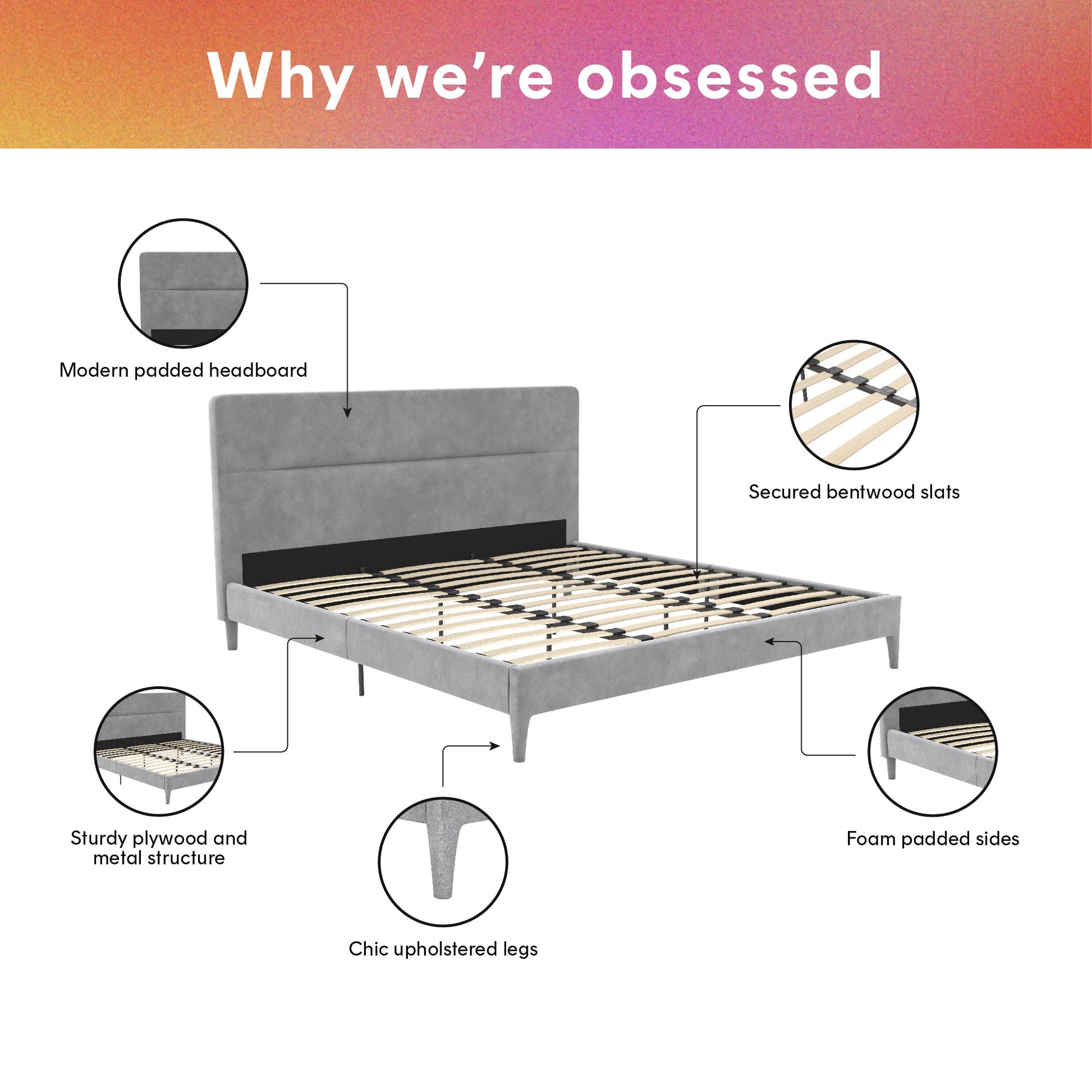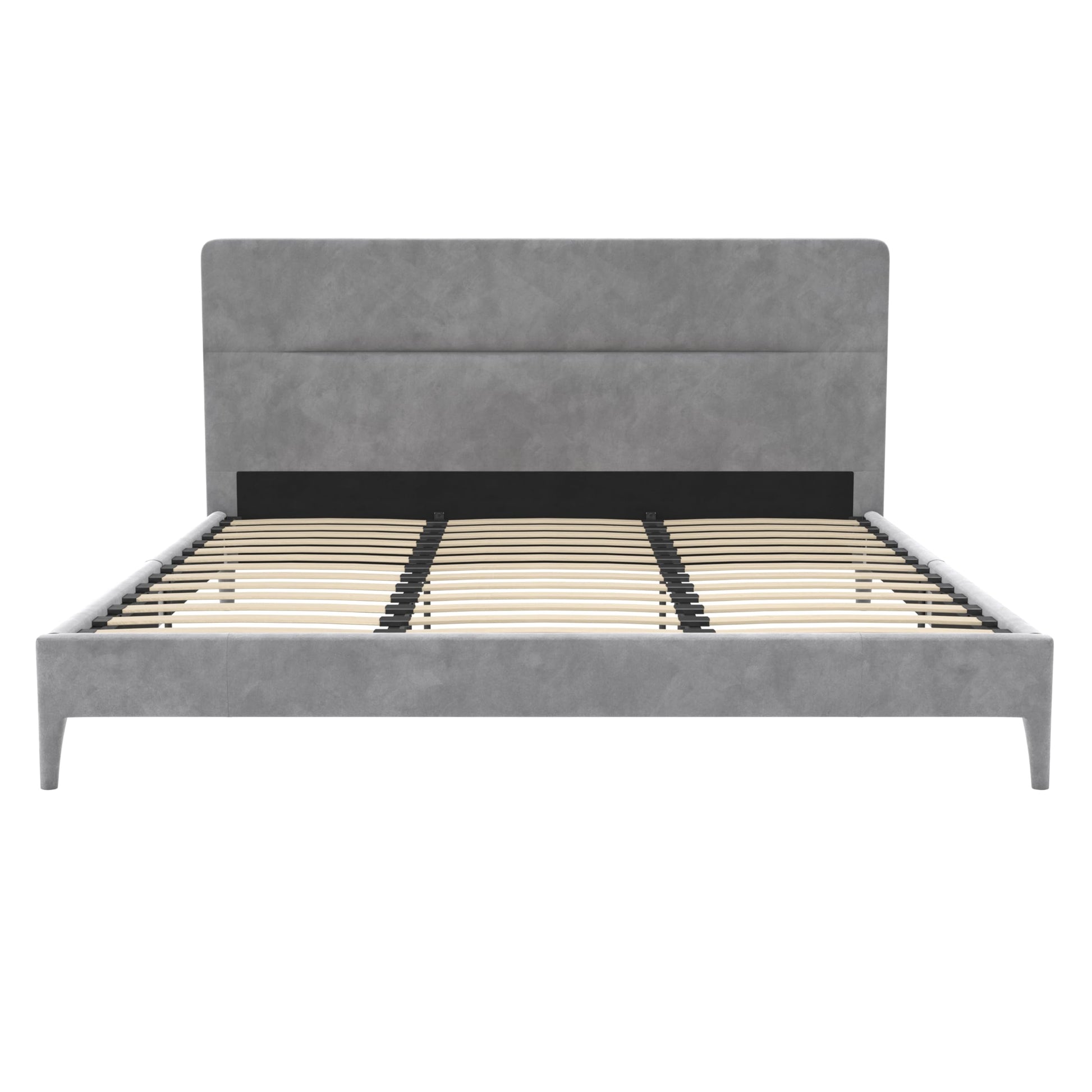 Included Components | CosmoLiving Westerleigh Upholstered Platform Bed with Minimalist Tufted Headboard, Wooden Slat Support, No Box Spring Needed, Fabric Covered Legs, King, Light Gray Velvet |