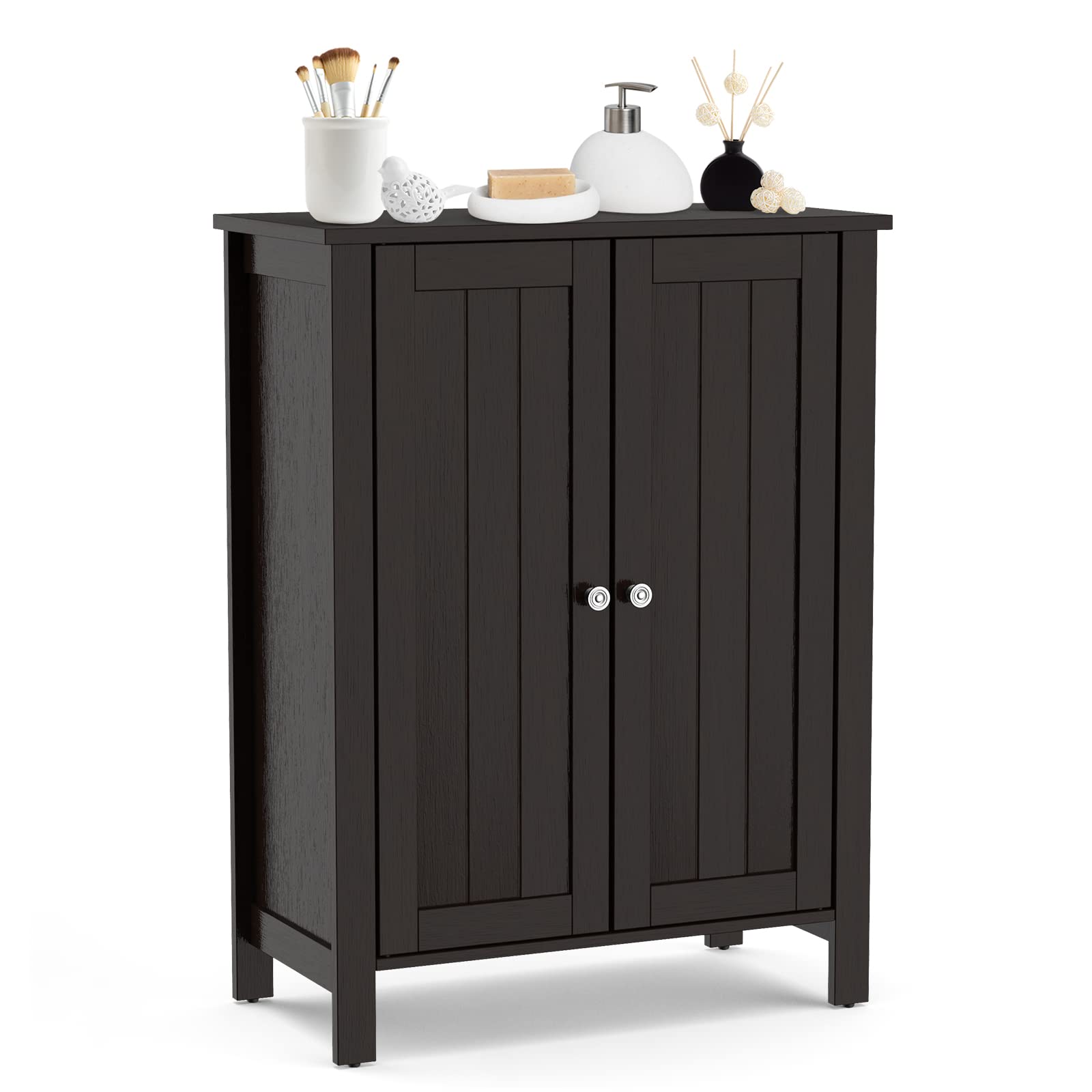 Bathroom Floor Cabinet - Freestanding Side Storage Organizer with Double Doors & Adjustable Shelf