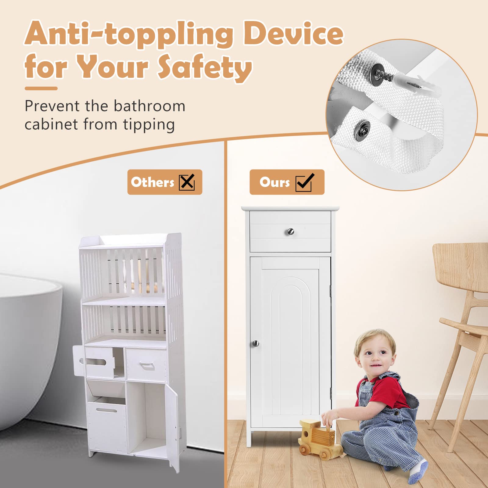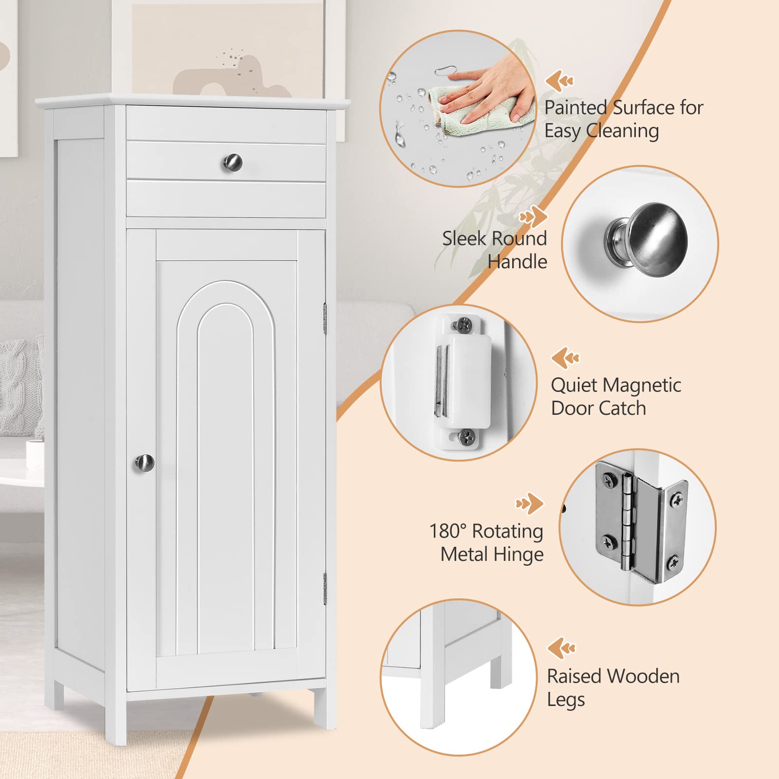 Bathroom Storage Cabinet, Single Door Floor Cabinet with Drawer and 3-Level Adjustable Shelves,