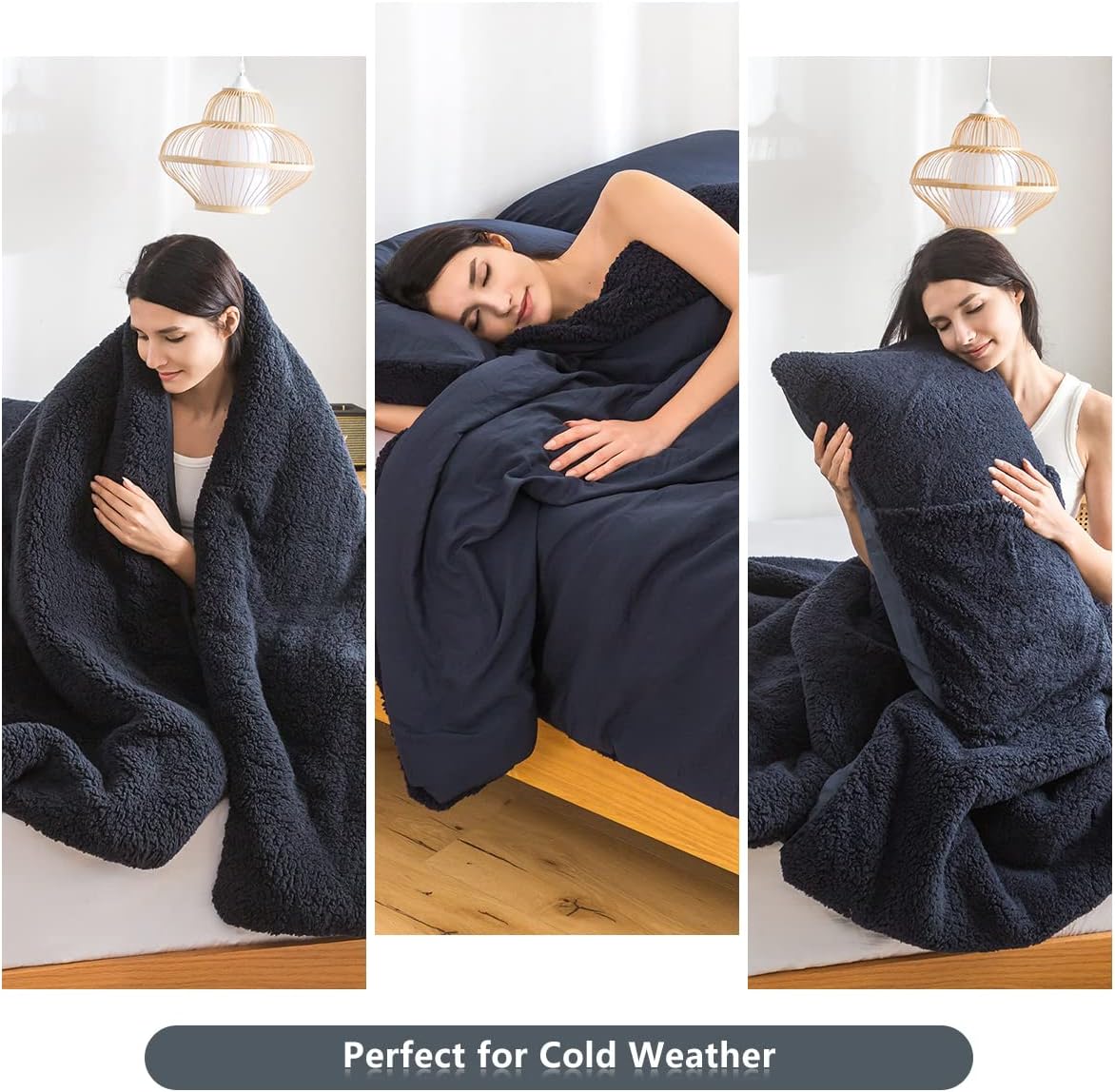 Warm Comforter Queen Size Sherpa Comforter Set Fuzzy Bedding Comforters