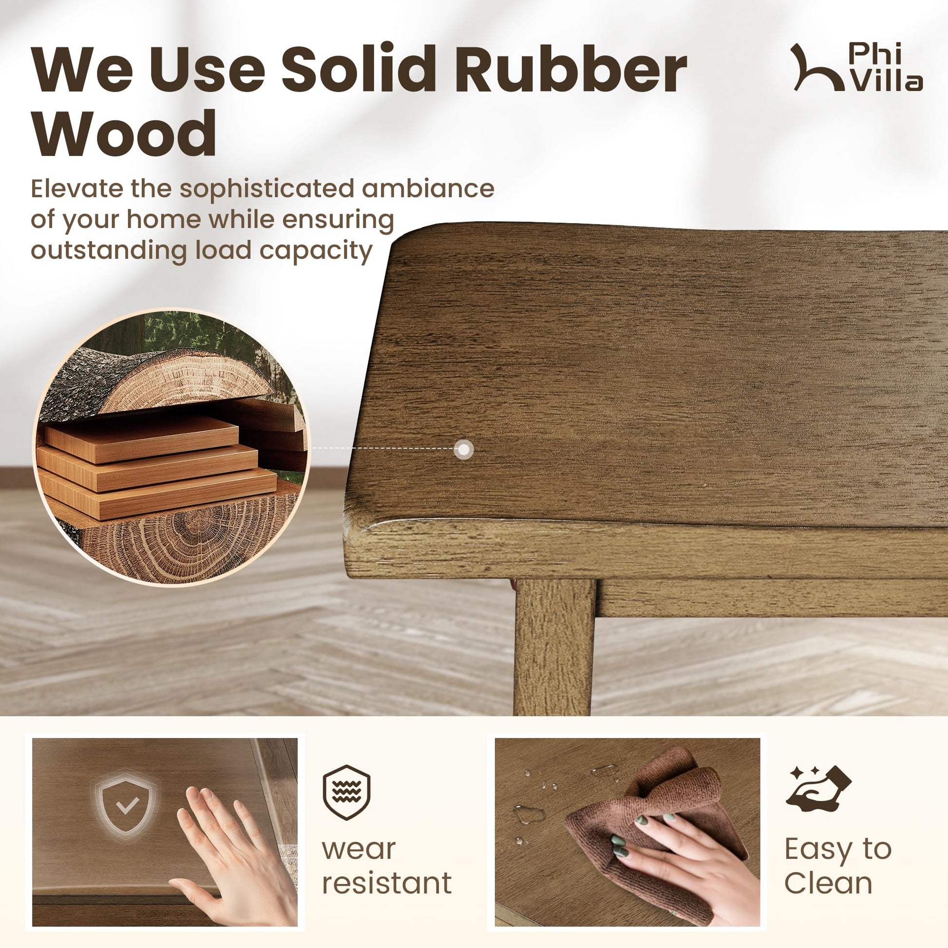 - Versatile seating options with bench and chairs