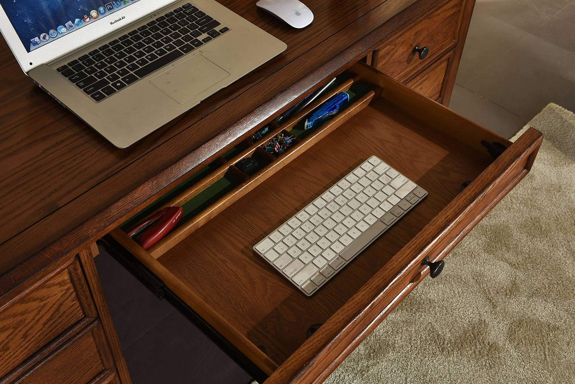- Center Drawer includes solid oak pencil organizer and optional drop down for keyboard use
