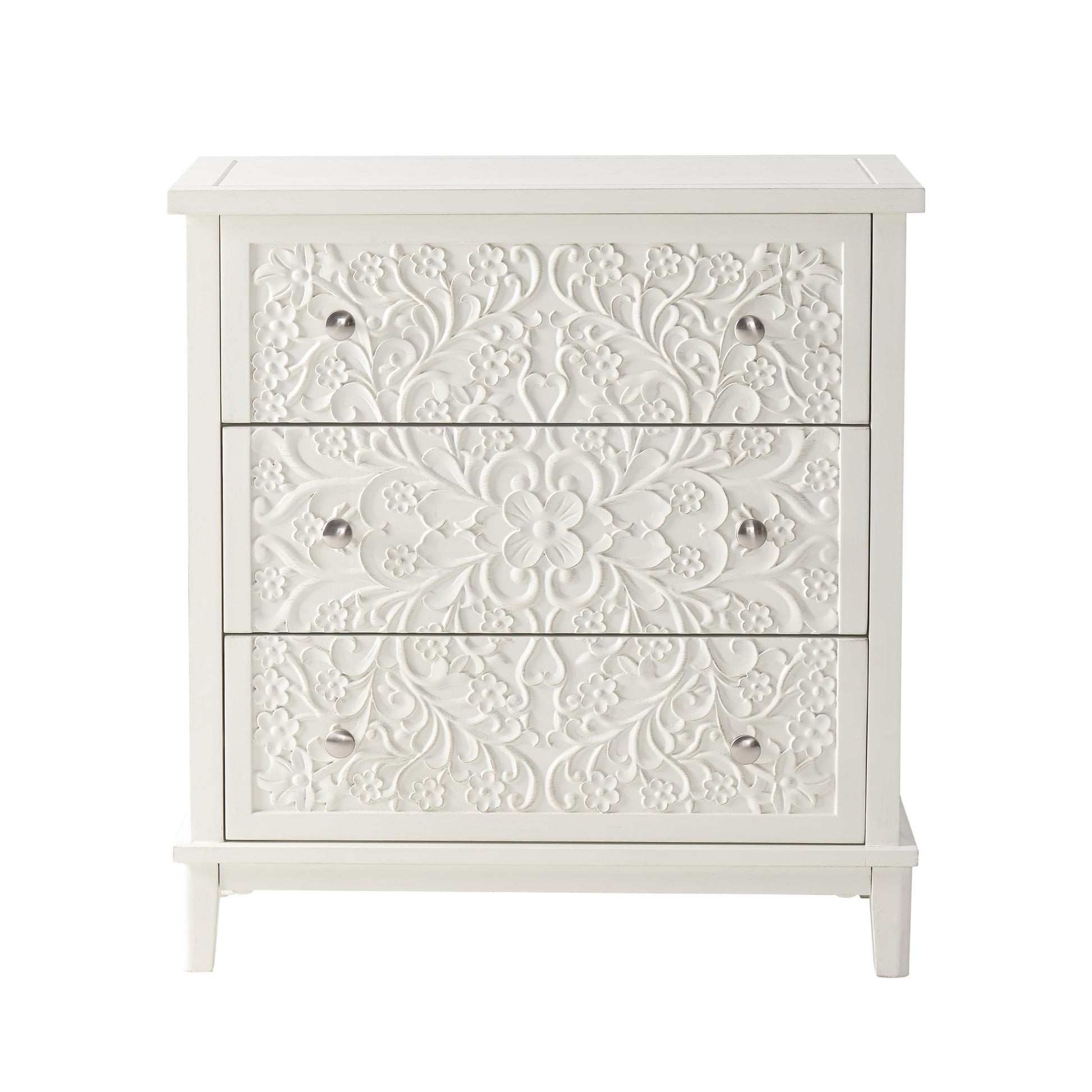 3-Drawer Fully-Assembled Flower Motif Dresser for French Country, Farmhouse, Modern