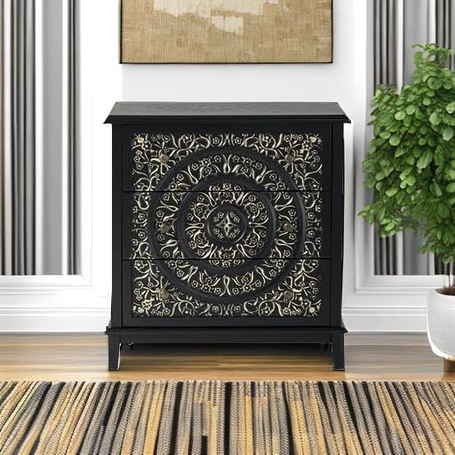 - Designer Style: The intricacy of its filigree-inspired cutouts create lively shadow play, This boho dresser brings added storage space to your bedroom to keep essentials within reach with its roomy drawers.
