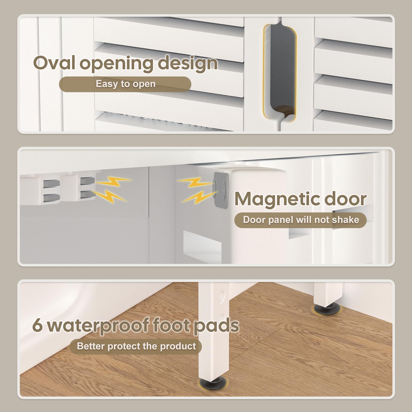 - Protecting Items: 4 doors 2 cabinets, over the toilet storage cabinet can effectively protect items, preventing them from being exposed to dust and moisture for a long time and getting damaged. The toilet storage cabinet also protect fragile items from accidental collision or falling. It also prevents items from being scattered and keeps the bathroom clean and tidy.