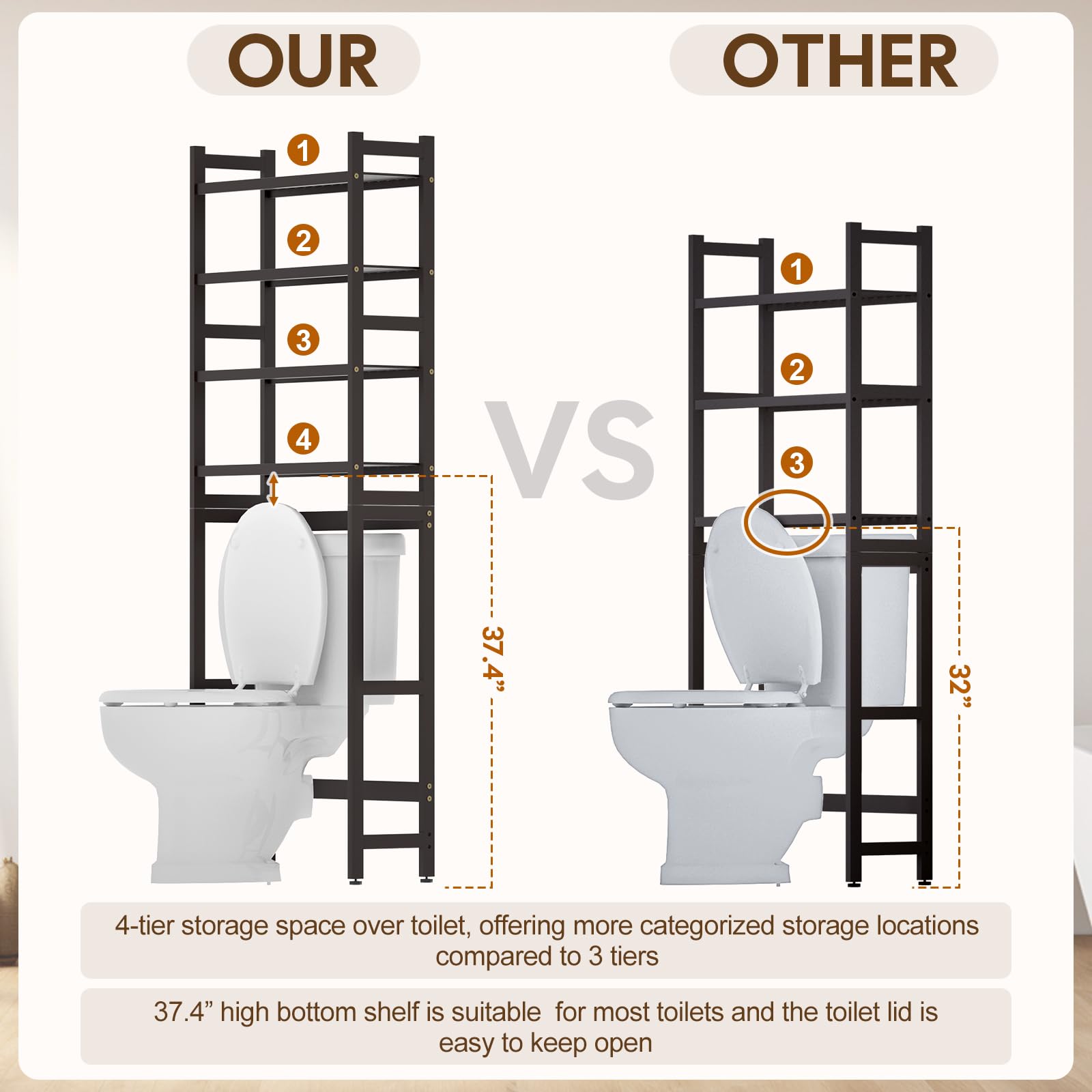 - 4-Tier Over the Toilet Storage : Our over the toilet storage has 4 valuable storage spaces above it, which can fully utilize your bathroom space to store toilet paper, shower gel, aromatherapy, and other items, increasing the bathroom storage area. It allows easy access to towels, tissue paper, or cosmetics without taking up additional floor space.