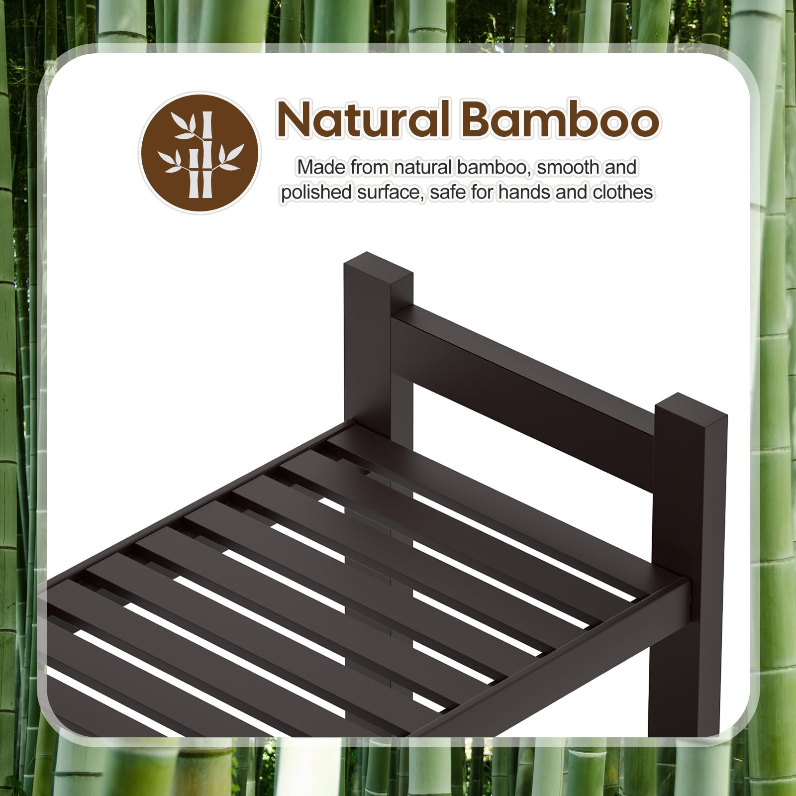 - Natural Bamboo Material: This over the toilet storage shelf is made of natural bamboo, with a smooth and polished surface that is not easy to hurt hands or damage clothes. At the same time, the bamboo material is treated with PU-friendly paint, making it more sturdy and easy to clean. Each of the four shelves can bear a weight of 44.1 lbs, and the maximum load of the entire toilet rack is 176.4 lbs.