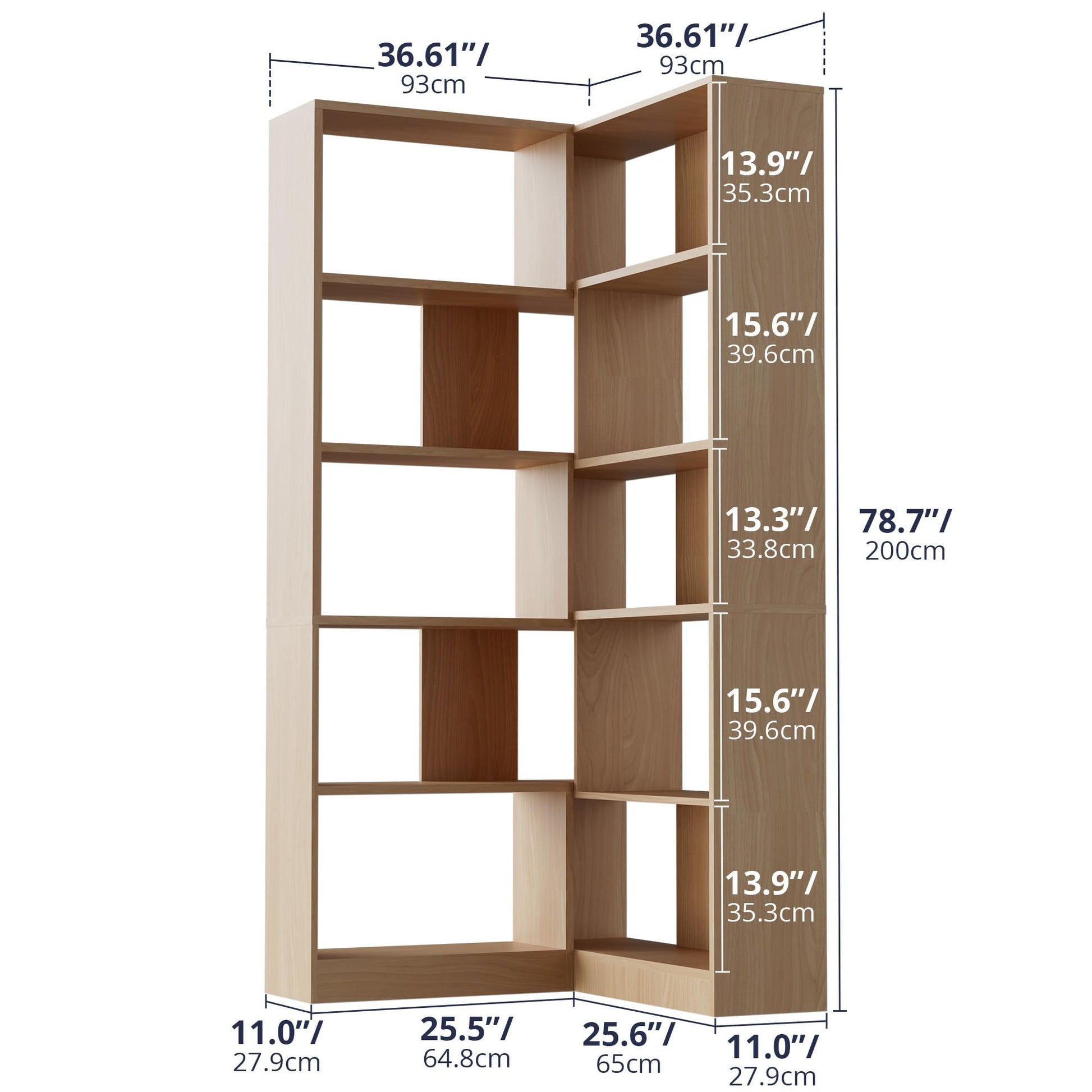78" Tall Corner Bookcase,5 Tier Corner Bookshelf with L Shaped Design,