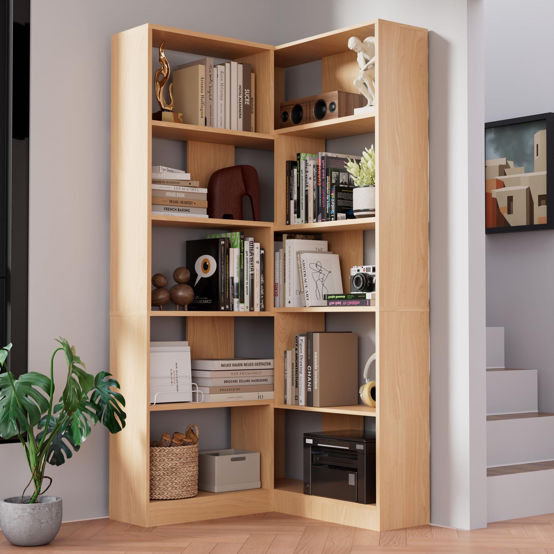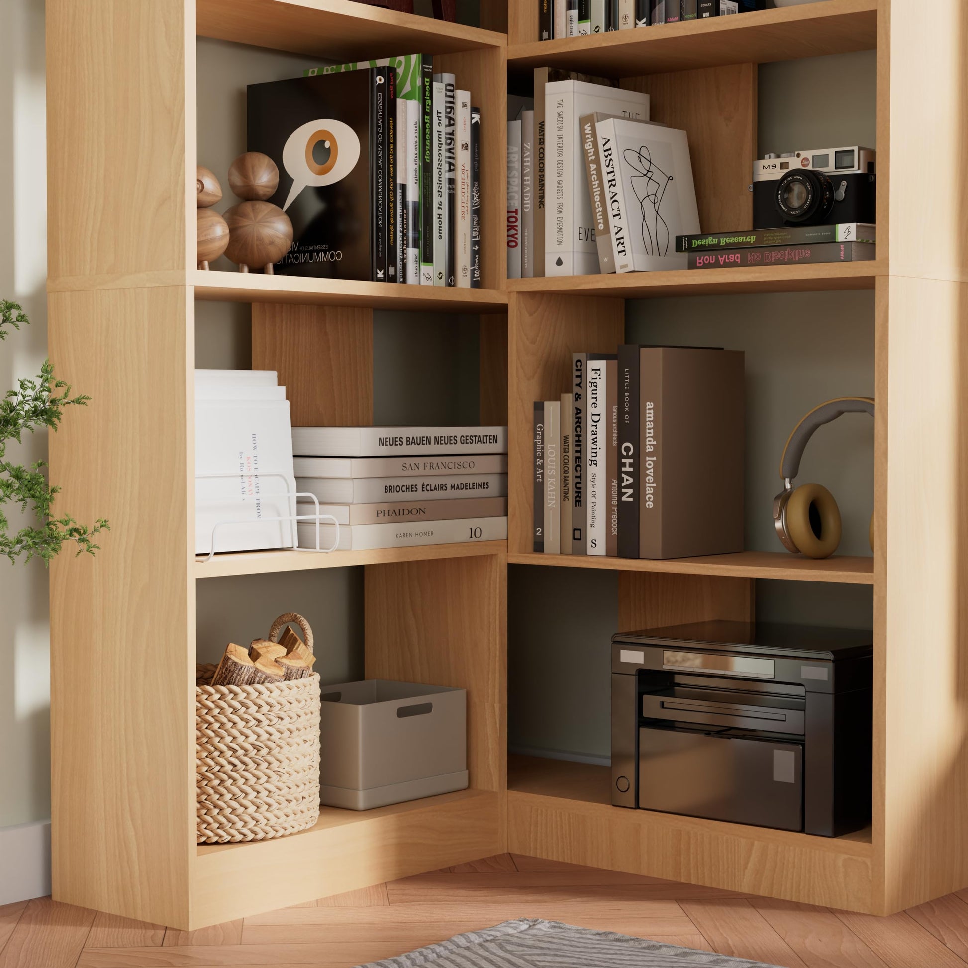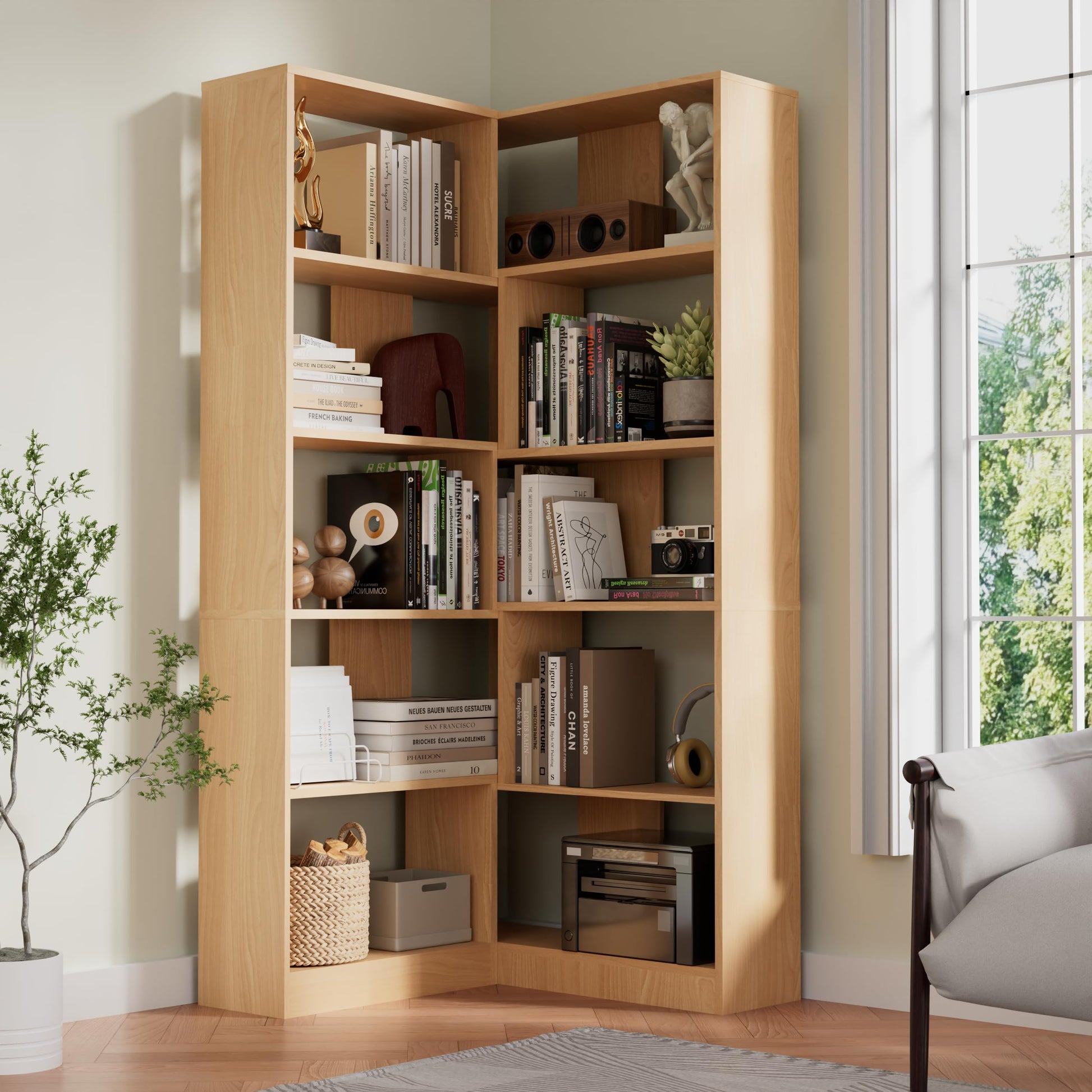 - LShaped Design for Space-SavingOur Corner Shelf features an L-shaped design to perfectly fit the wall maximizing the value of the corner for you and increasing space utilization. In addition, it is equipped with intimate panels on the sides, which can reinforce the Corner Bookcase while preventing items from falling, and allowing it to store things safer and cleaner.