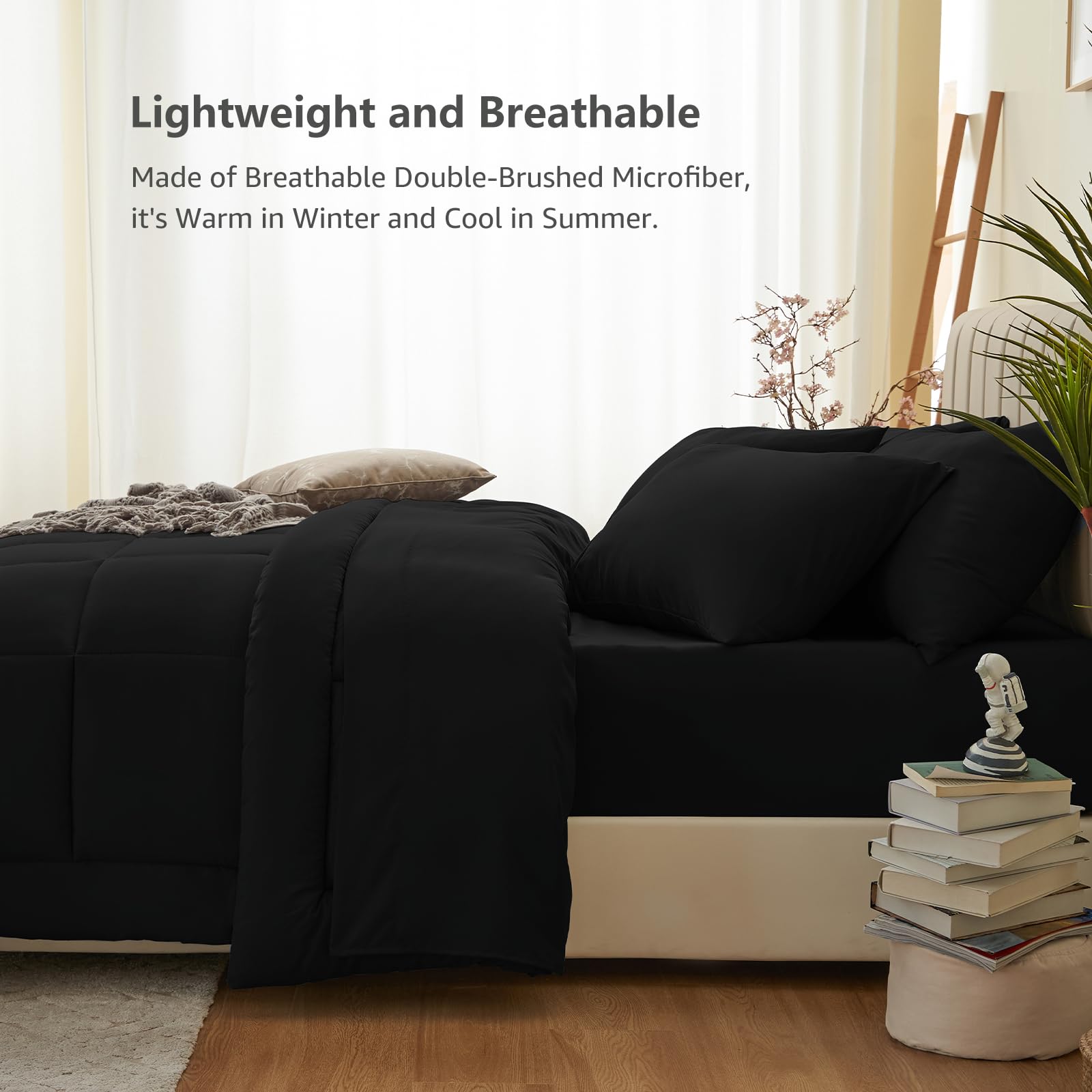 Queen Comforter Set - 7 Pieces Bed in a Bag Set Black, Bedding Sets Queen