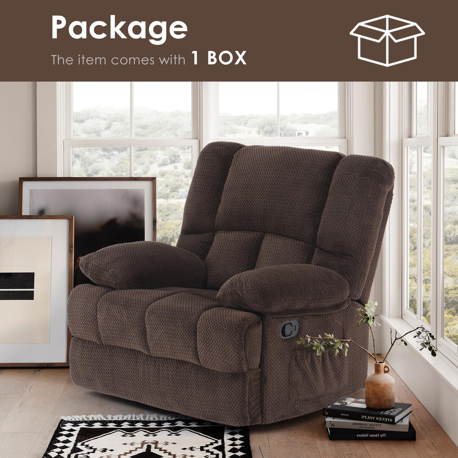 - Oversized Comfort: Designed for maximum space and coziness, this recliner chair offers wide seating, cushioned armrests, and full padded support.