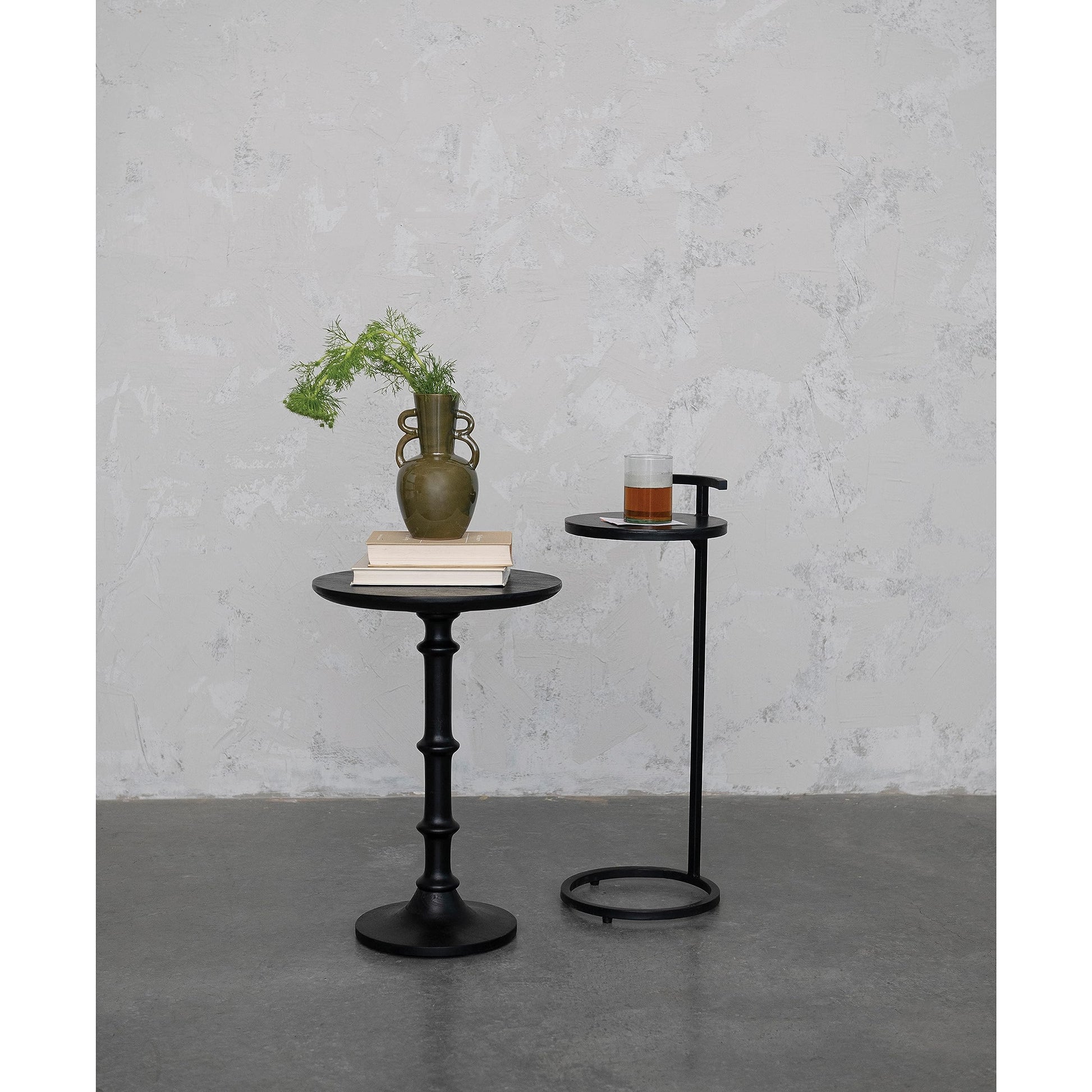 Round Metal Table with Handle, Matte Black