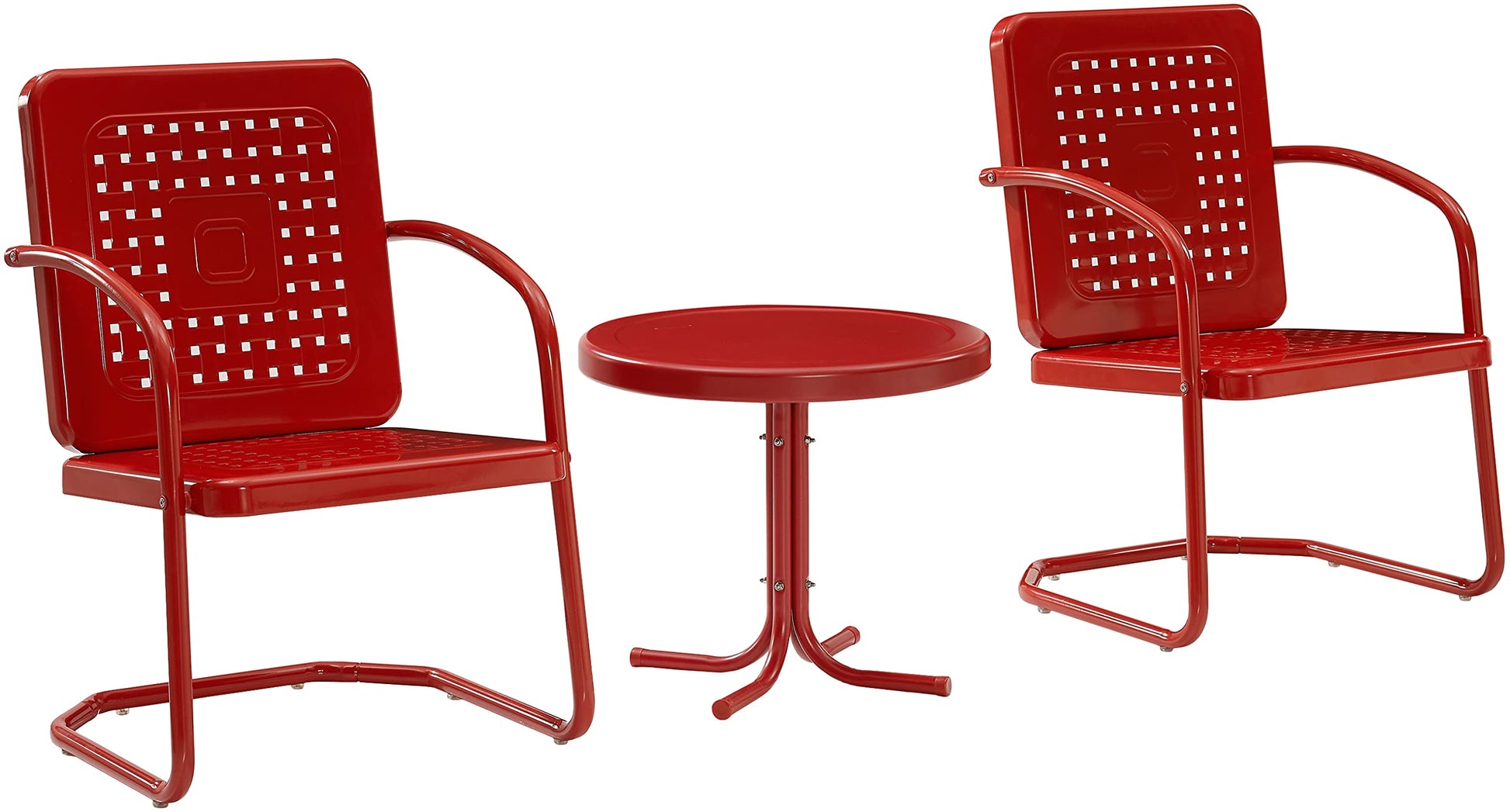 Bates 3-Piece Outdoor Chair and Side Table Set, Retro Metal Bistro Patio Conversation Sets