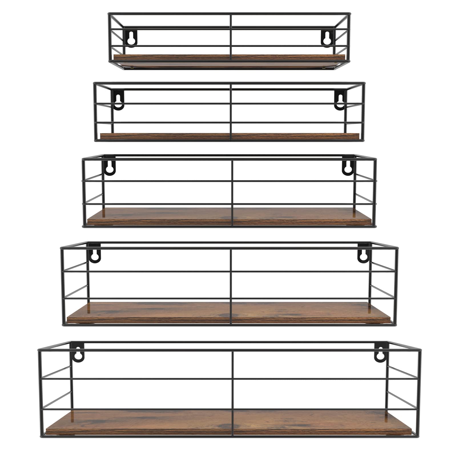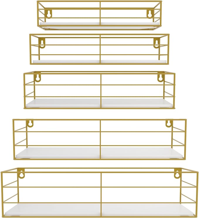 - Multifunction Wall Shelves: 5 different sets of floating shelves meet your storage need at one time. You can put them in Bathrooms, Living rooms, Bedrooms, Kitchens, Laundry Rooms, Garage, Office, Bar, Cafe houses.