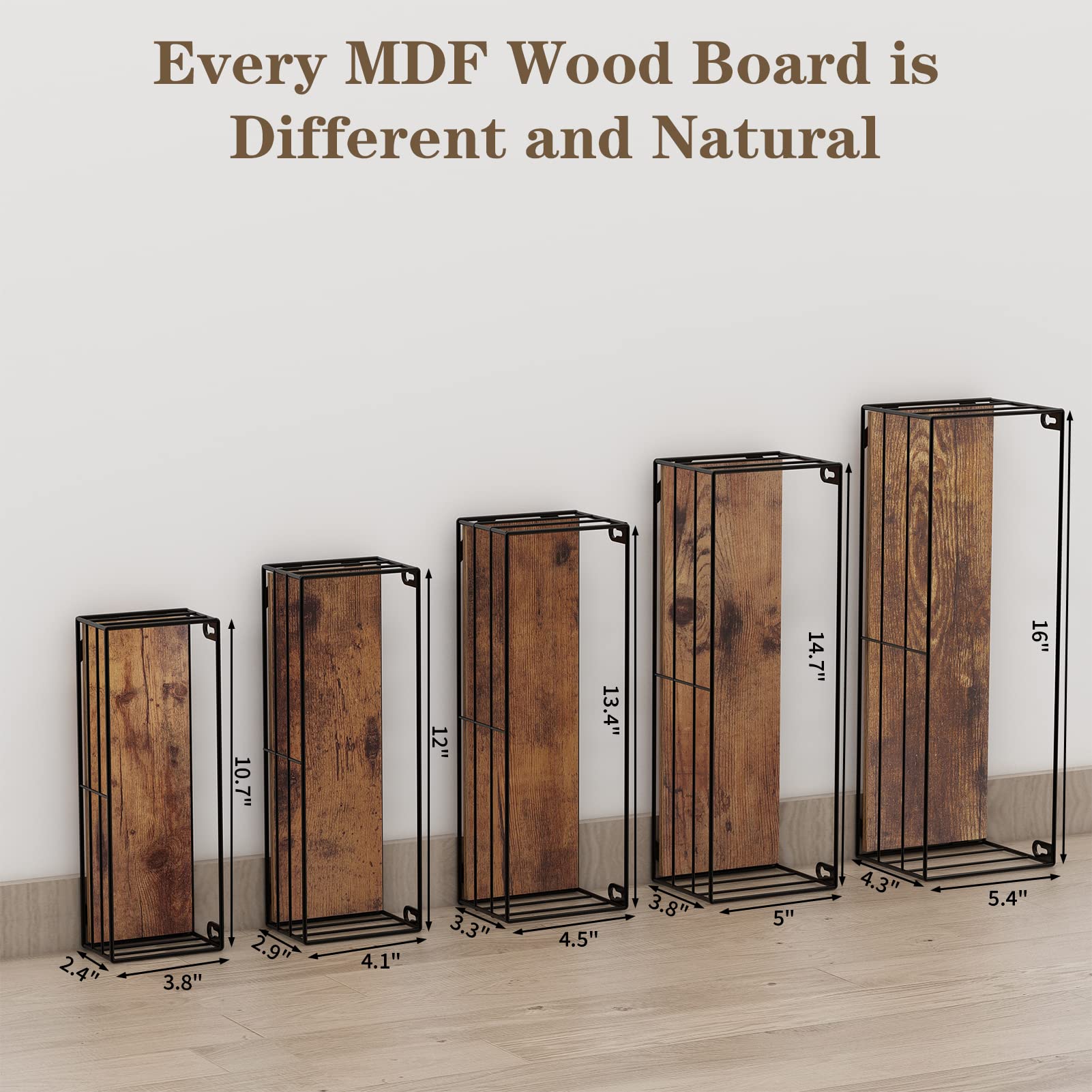 - Decorative Floating Shelves: Each sturdy MDF wood board is different with a natural look. Combined with Brief and geometric brackets, they are giving a rustic and modern look that adapts themselves to the environment easily and brings your wall to life.