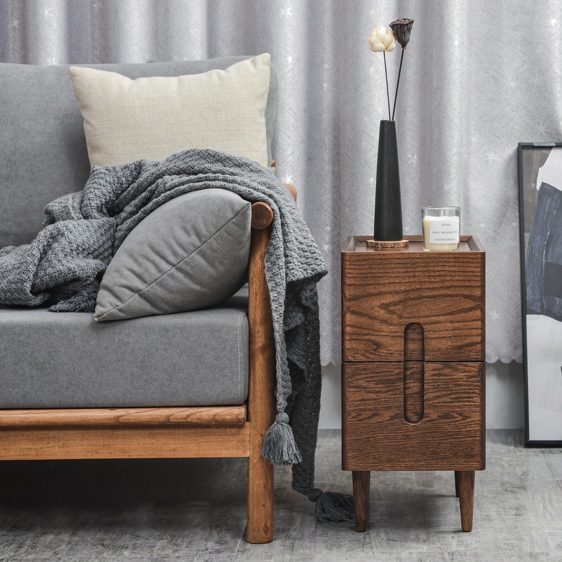 - Detailed design: The wooden side table is designed with smooth drawers that open and close easily and quietly, without any annoying squeaks or noises. The tabletop is perfect for storing everyday items like books, phones, and lamps, while the narrow size doesn't sacrifice functionality. The edge is designed with an anti-slip and raised feature, making it practical and stylish.