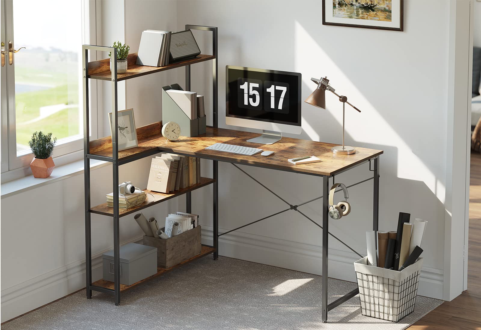 - Our desk with sehlves is designed for a easy assembly process with a complete set of tools and clear instructions. Should you encounter any product-related issues, our customer support team always there for you. We are committed to provide lifetime customer service for your satisfaction.