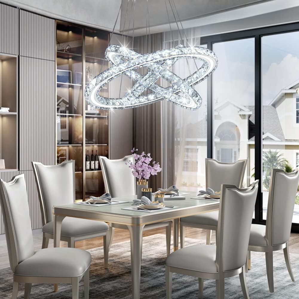 - Crystal pendant hanging light size:3 circle ring diameter is 11.8"- 15.7"-19.7" inch. Adjusting the hanging cable to change the length, you can get variety of shapes of the crystal chandelier.