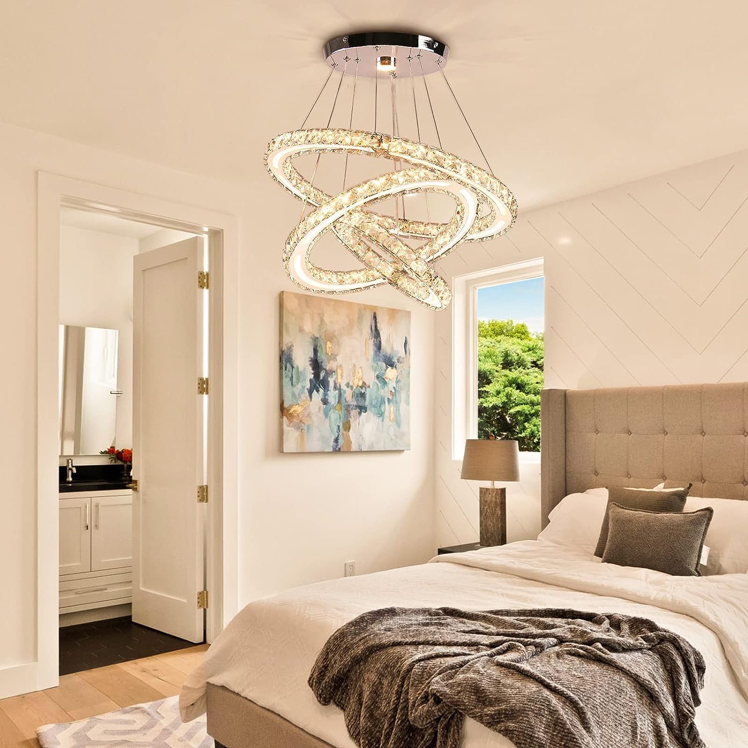 Modern Chandeliers Crystal Ceiling Light 3 Rings Dimmable LED Pendant Light Fixture