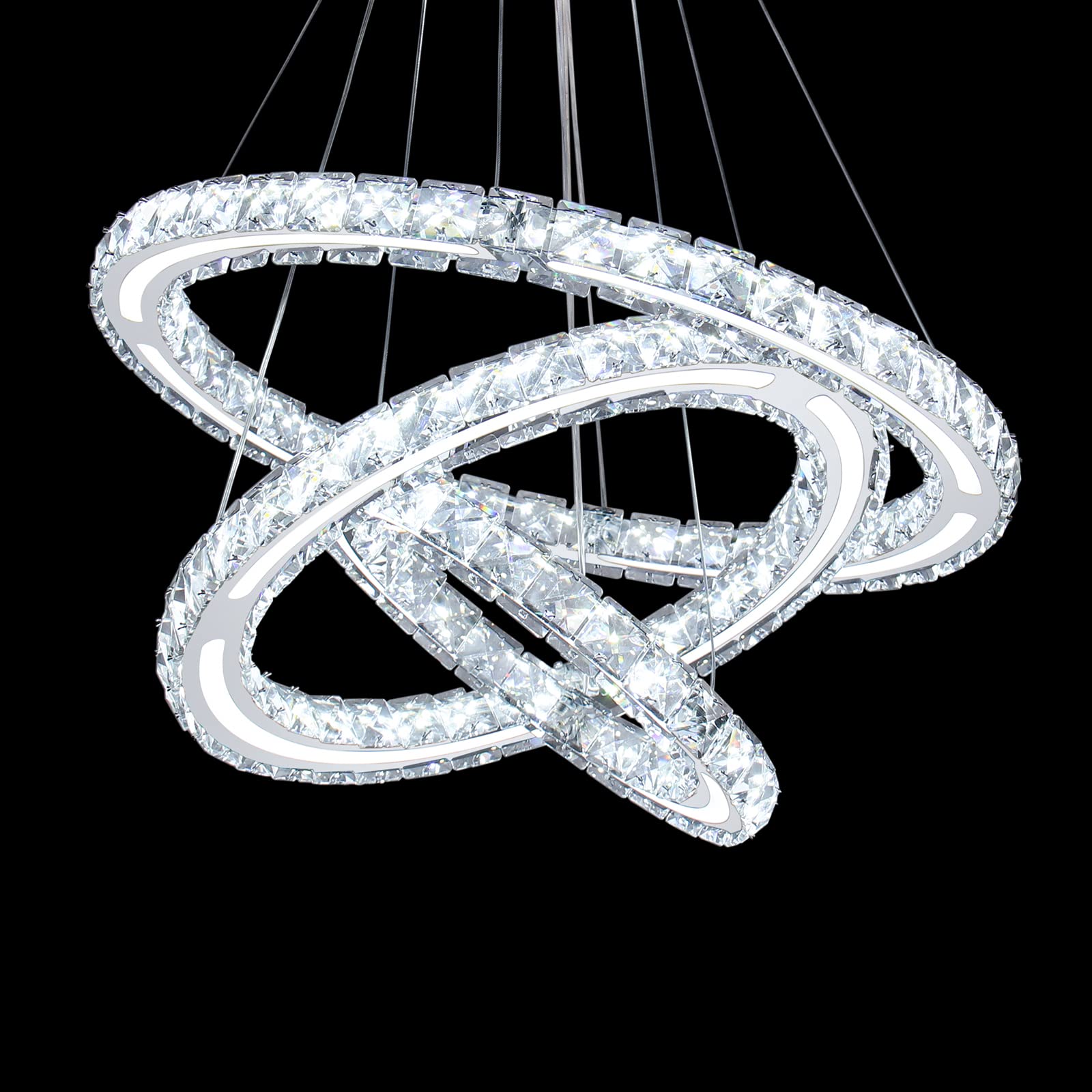 - 3 Ring chandelier is made of high quality K9 Crystals and Stainless Steel, add Acrylic to increase the brightness, improves lighting transmittance, high light efficiency up to 120lm/w.