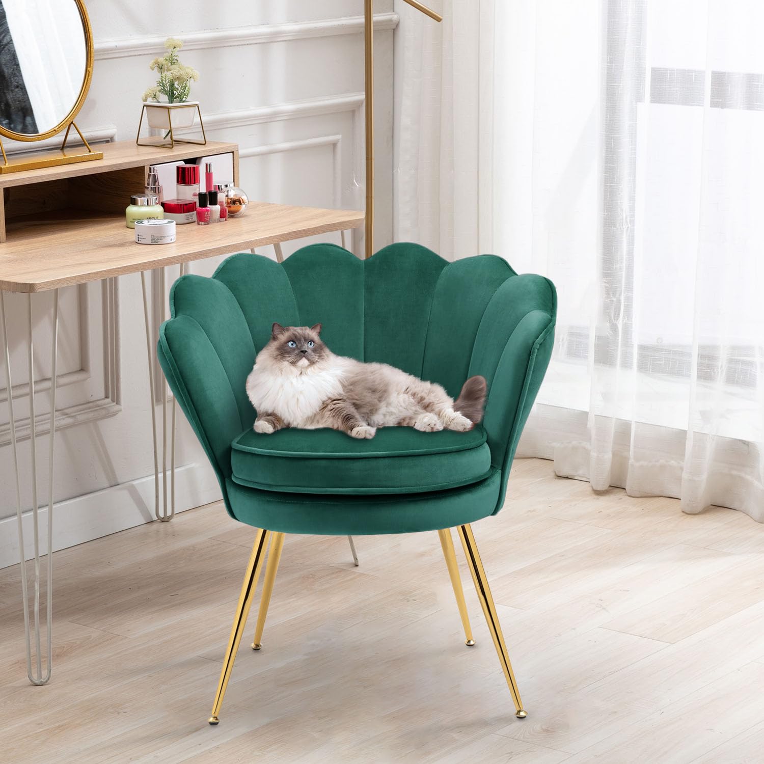 - Are you looking for a modern and fashionable accent chair? This velvet flower armchair is made just for you! The backrest is petal shaped to make you look like a queen. Paired with stylish gold legs, it's perfect for a modern home style. It is a classic style from mid-century popular to modern. 5 colors to match with many home styles.
