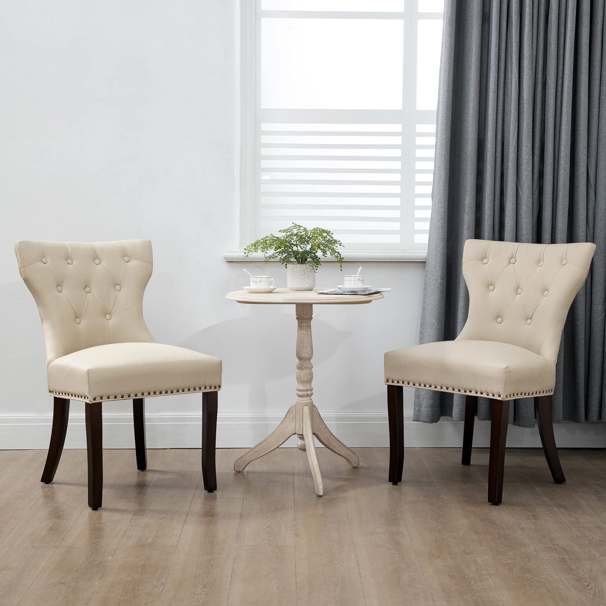 Fabric Dining Chairs Set of 2, Tufted Dining Room Chairs,Upholstered Solid Wood Accent