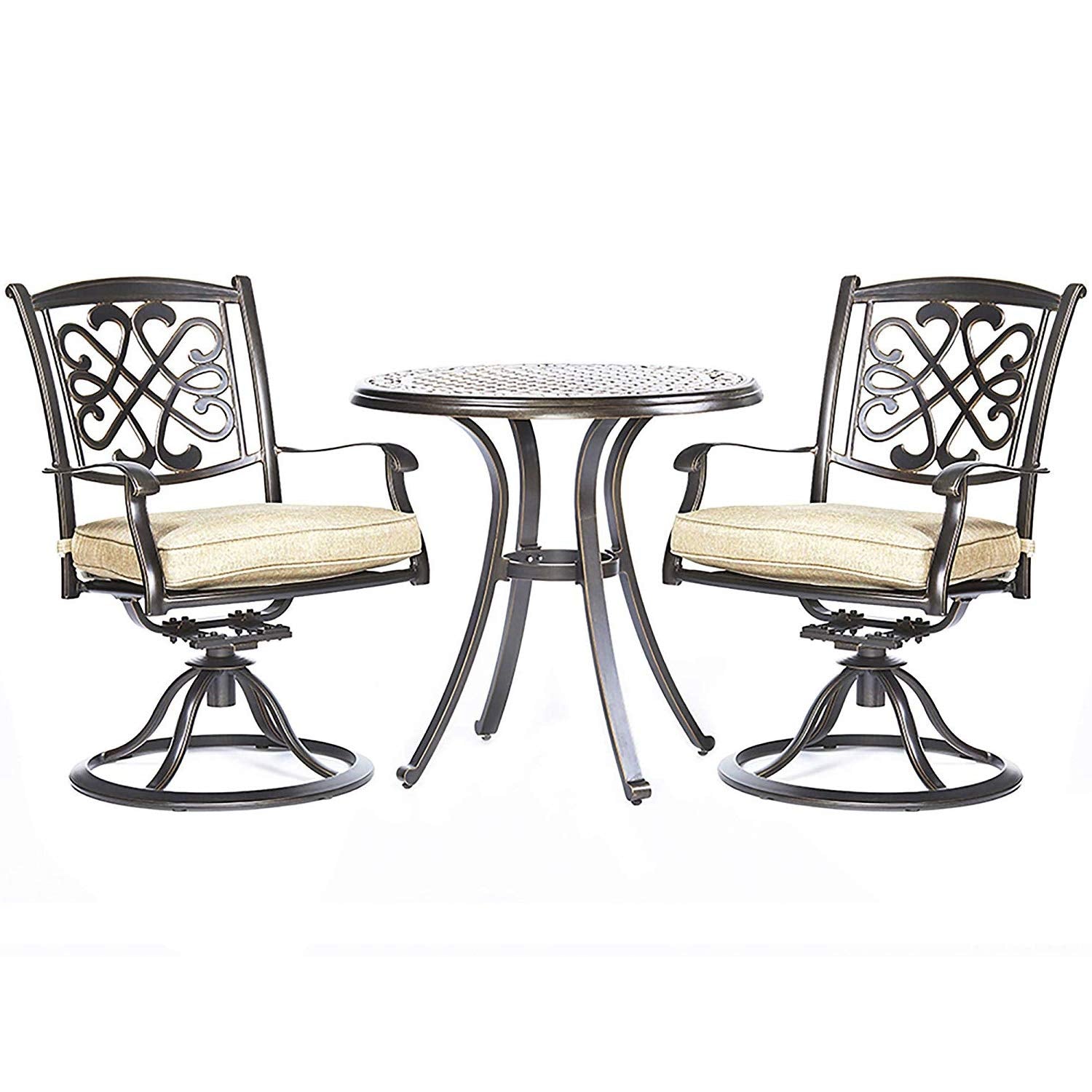 3 Piece Bistro Set, Cast Aluminum Dining Table Patio Glider Chairs