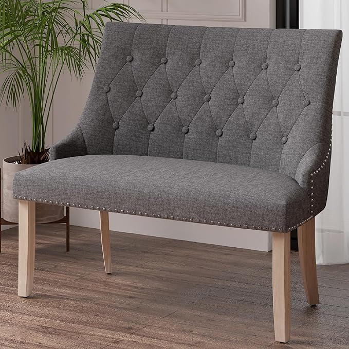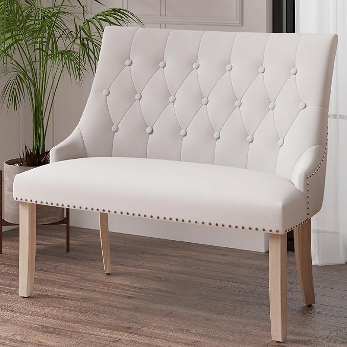 50IN Loveseat Settee Bench 2-Seat Sofa,Upholstered Linen Fabric High-Back Couch