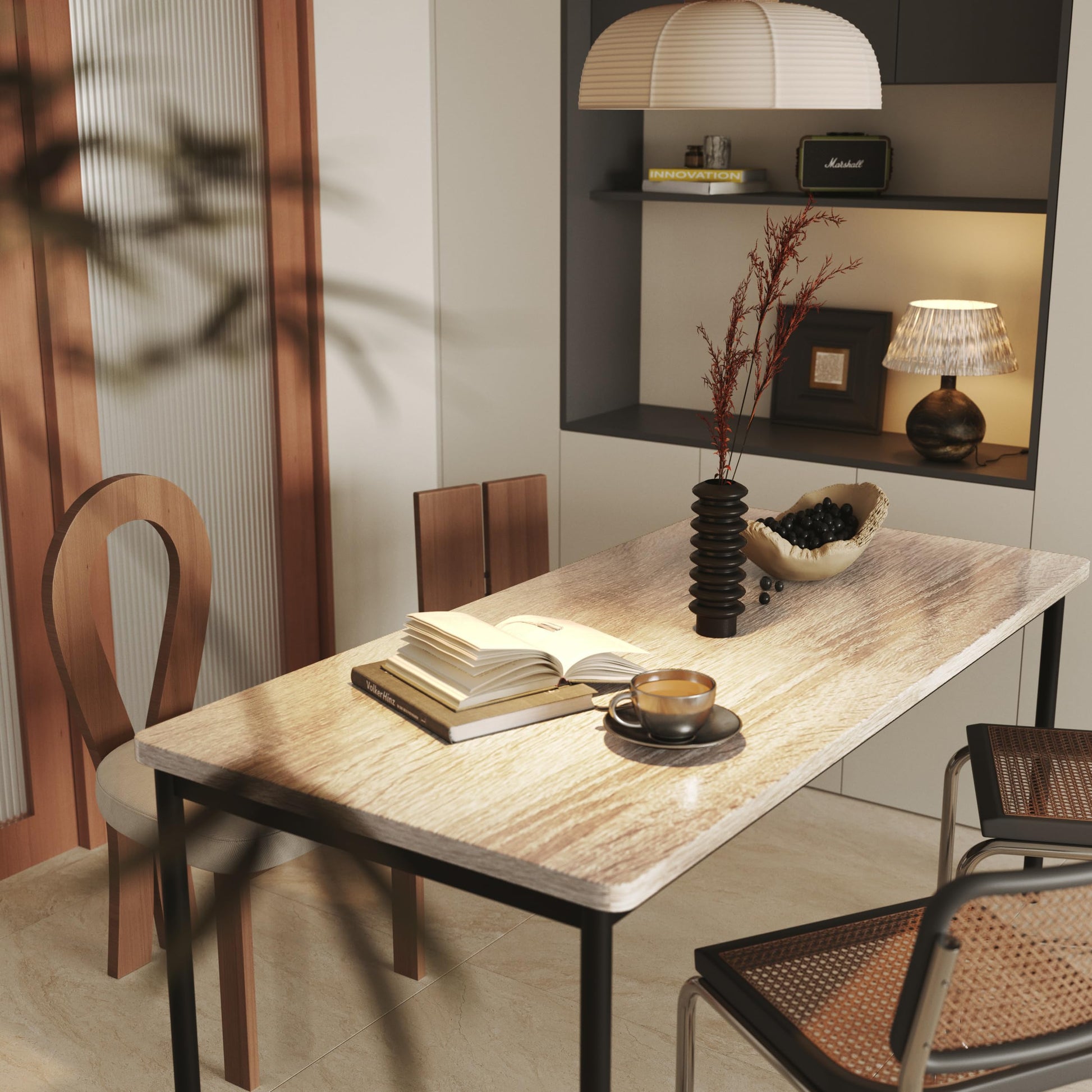 - 59-inch dining table boasts impeccable craftsmanship in its tabletop and legs, ensuring a durable and stylish centerpiece for your home. The whole tabletop adds a unique and character-filled design element to your dining space.