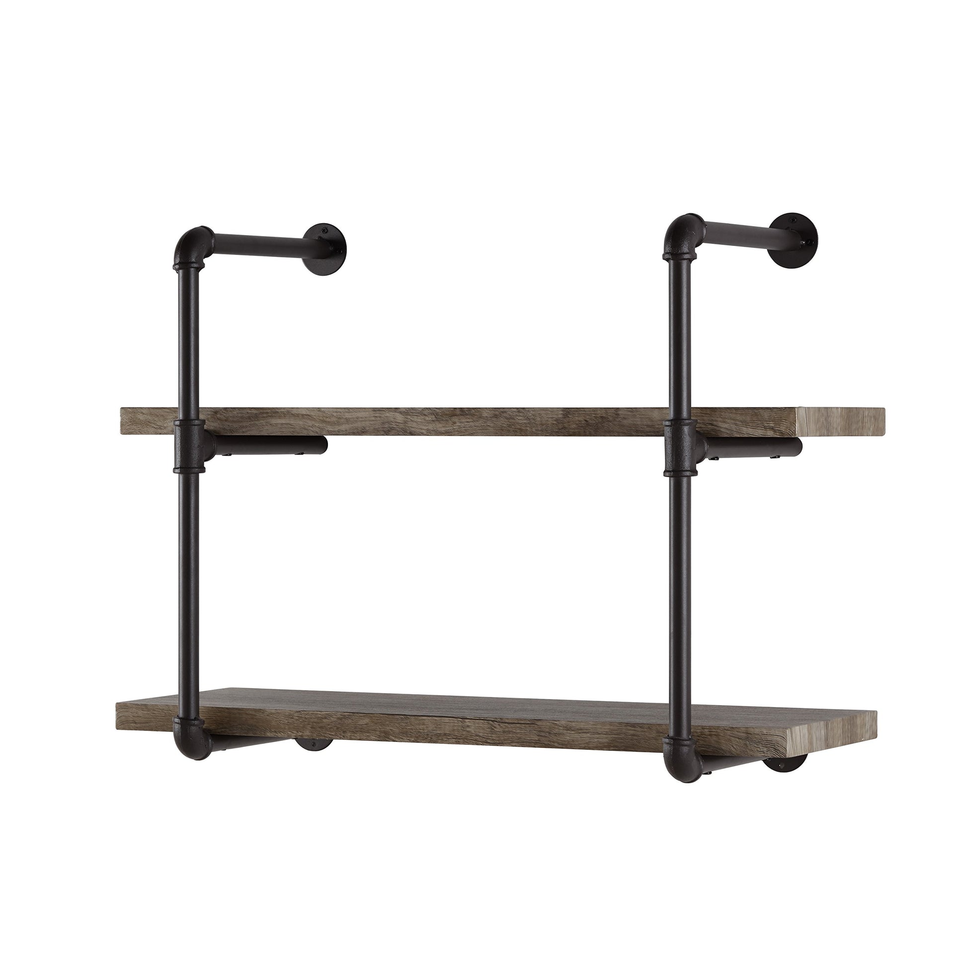 GH072 Two-Tier Floating Metal Pipe Shelves with Aged Wood Finish