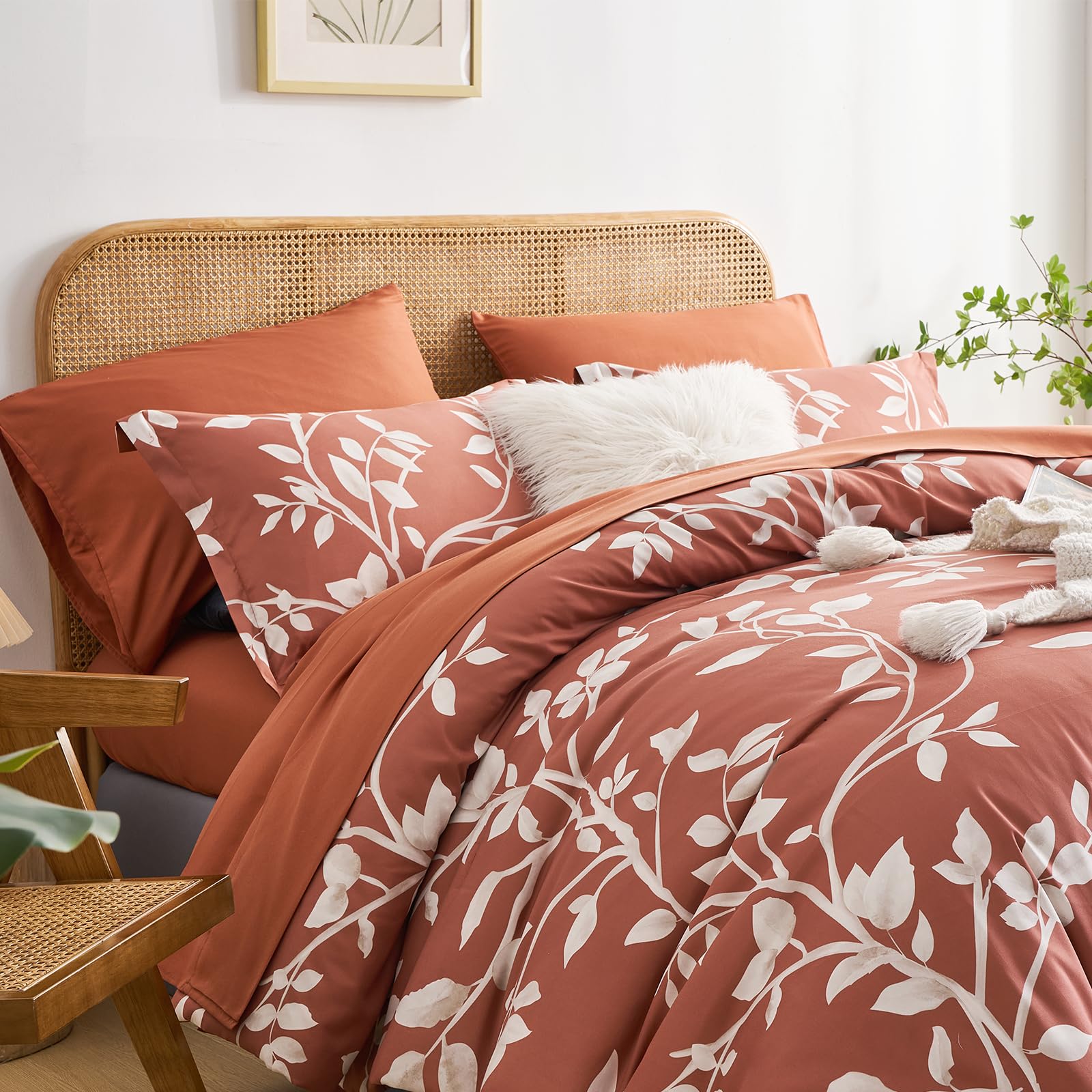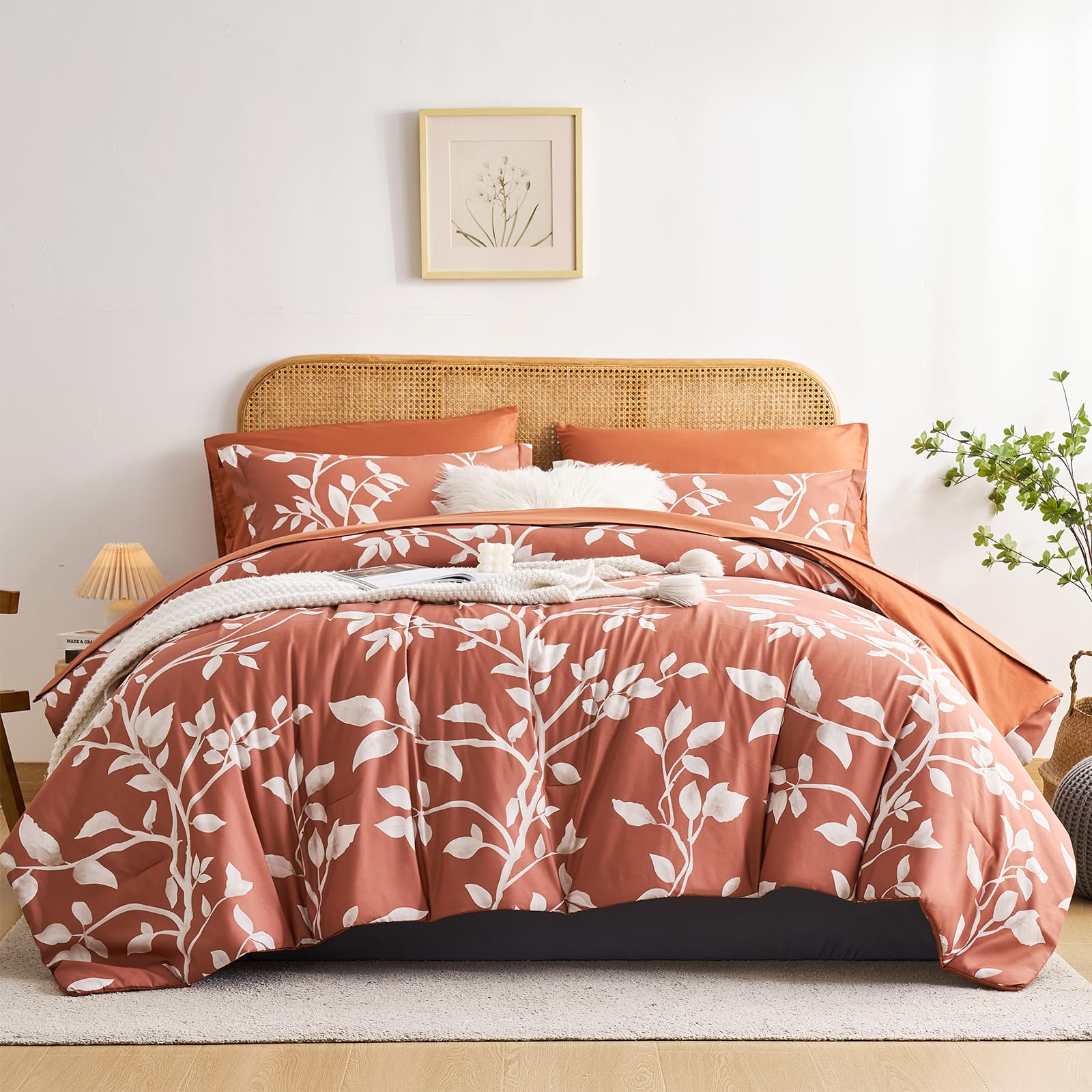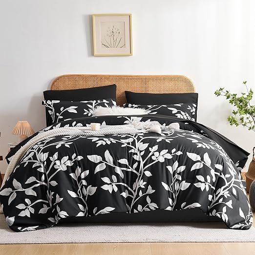 - Botanical Leaves Design White botanical leaves printed on 7 pieces comforter set, gives you a fresh and vitality vibe. With simple and vibrant color, the bed set can perfectly match your interior decor. Good choice as a birthday gift for teens, boys, girls, men or women.