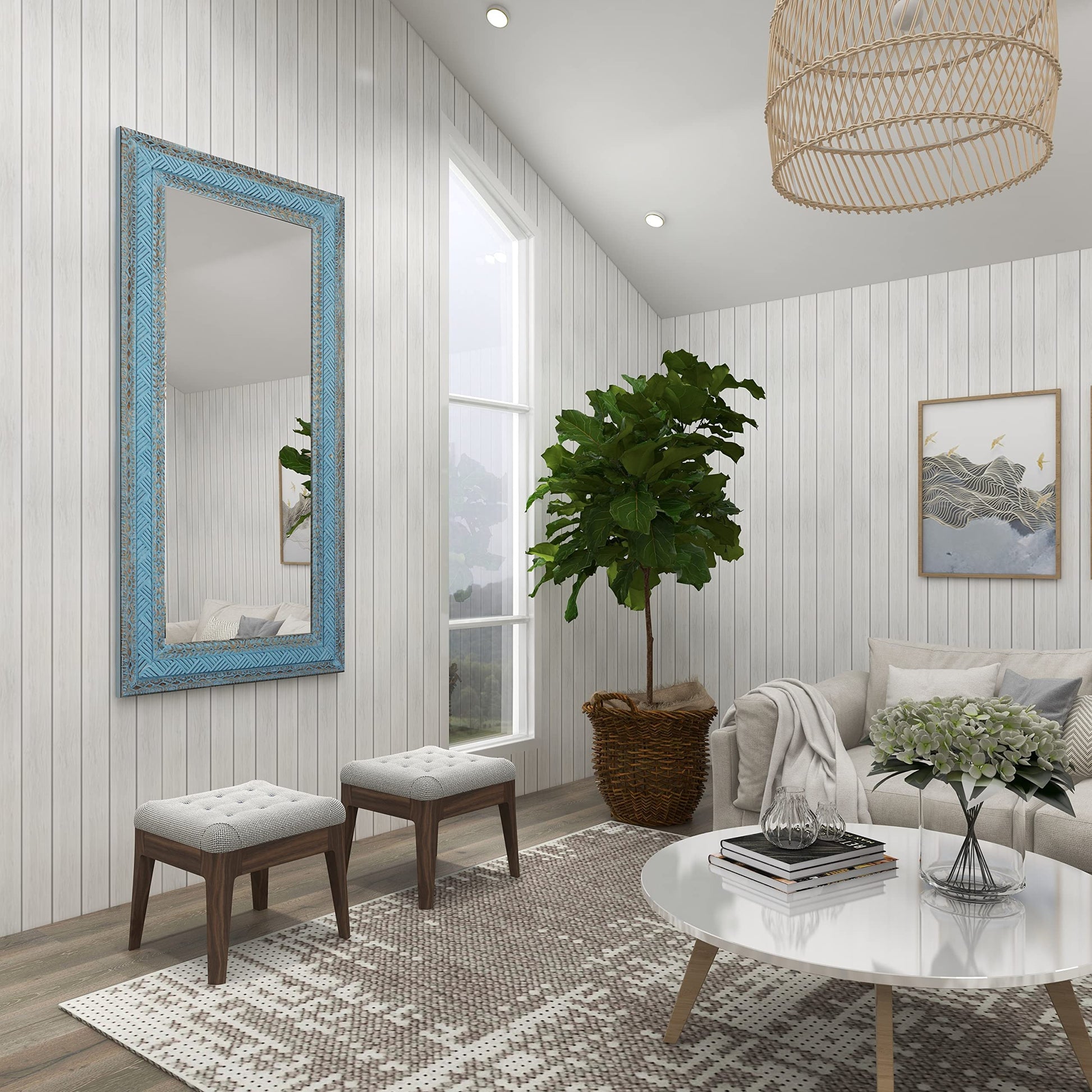 | Shape | This floor mirror accentuates a rectangular form with textural carving and weaving pattern around the border |