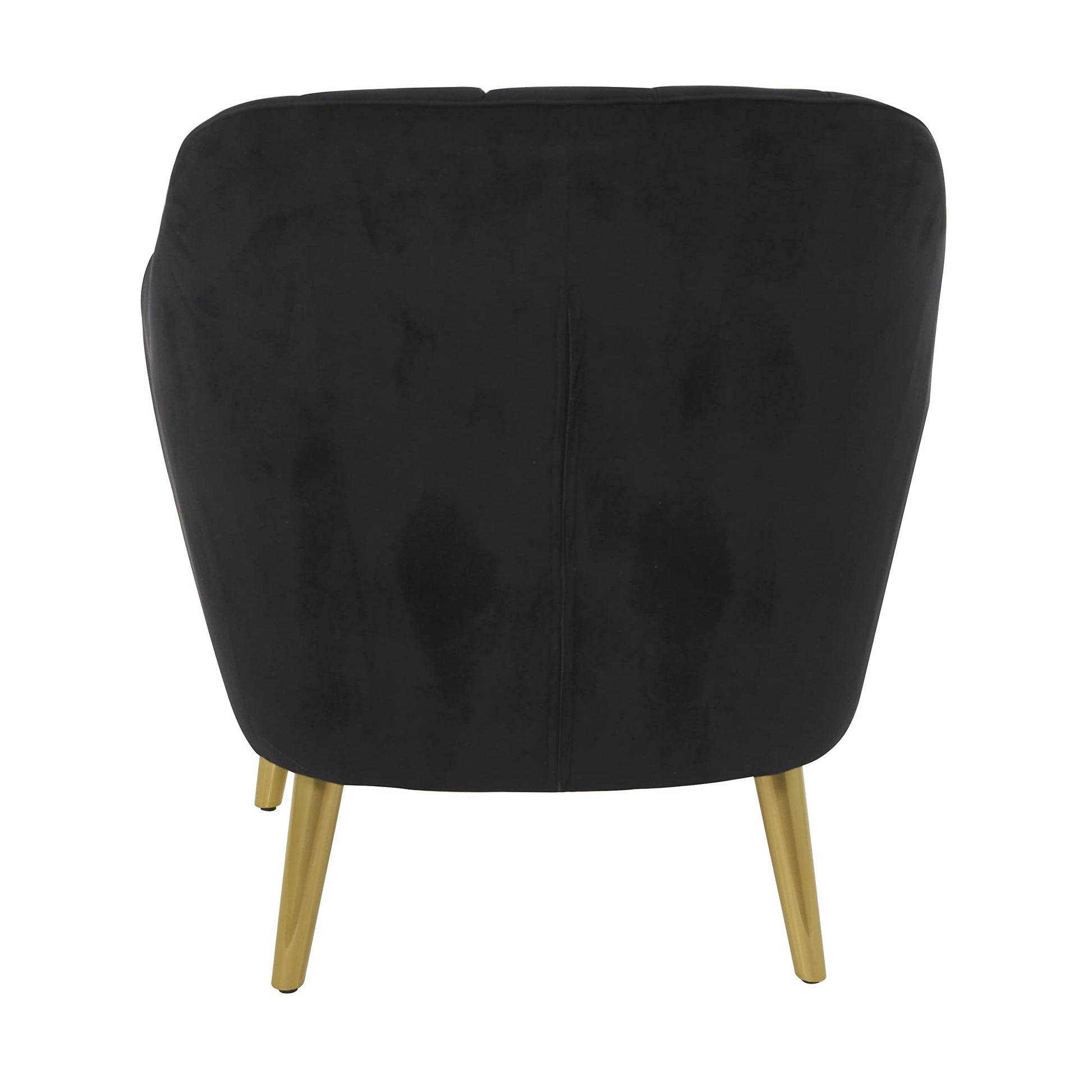 - BLACK AND BROWN POLISHED FINISH: Faux velvet chair features a smooth black cushioned seat and dark gold iron legs