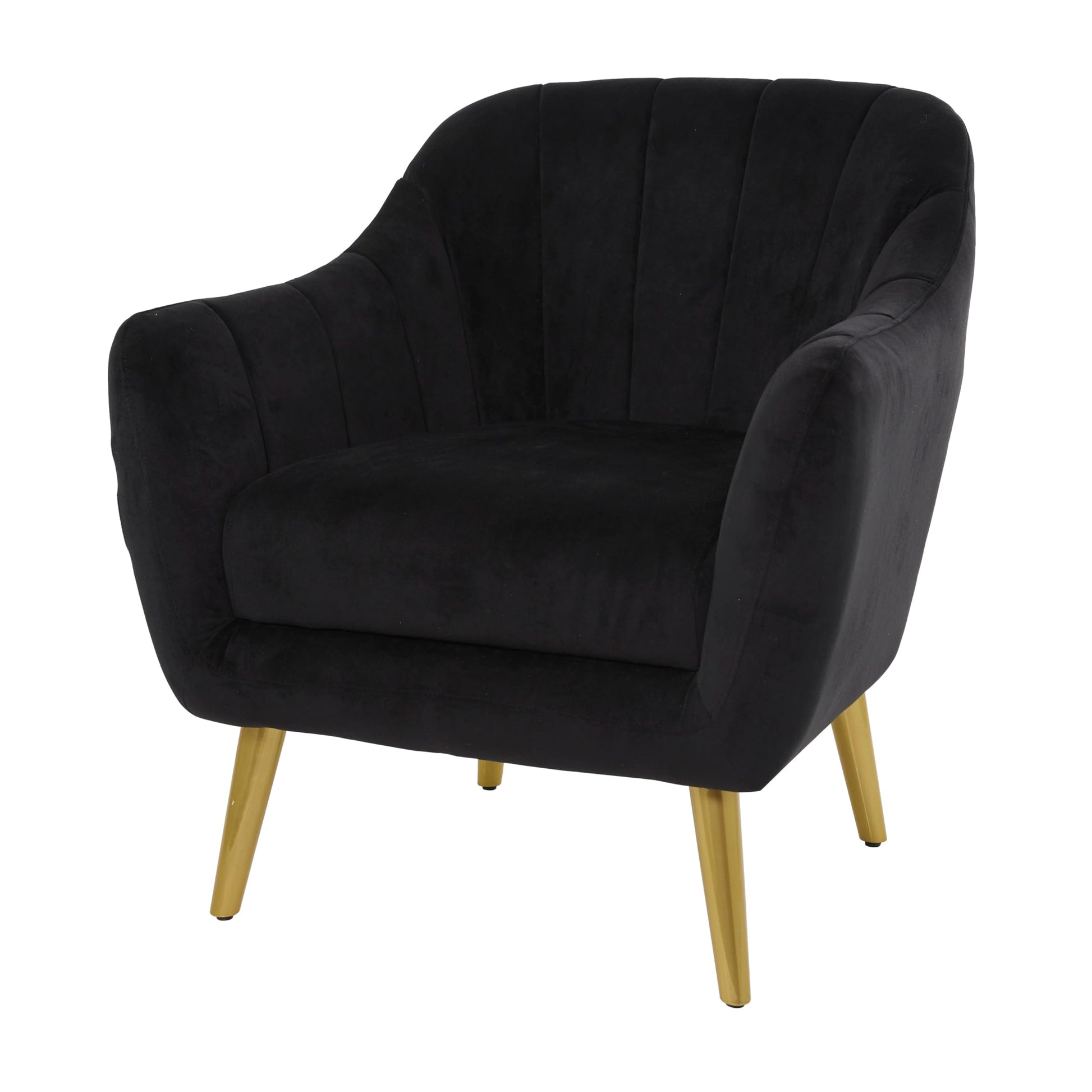 - SQUARE ACCENT CHAIR: Classic black velvet accent chair features a fully cushioned seat with a thick armrest, a slightly bent backrest with vertical linings, and slender gold legs with a rubber base protection at the bottom for a scratch-free furniture experience