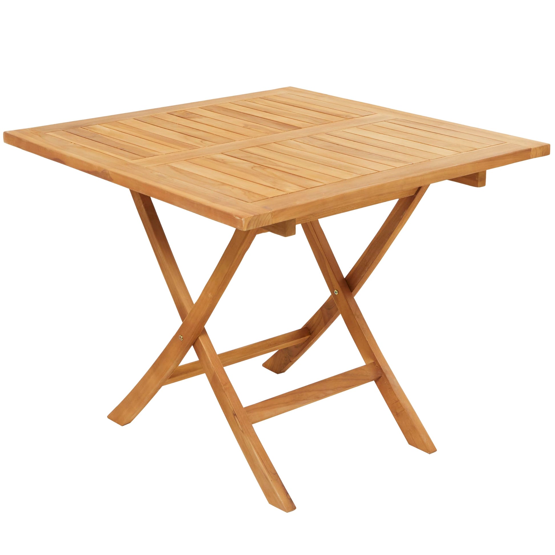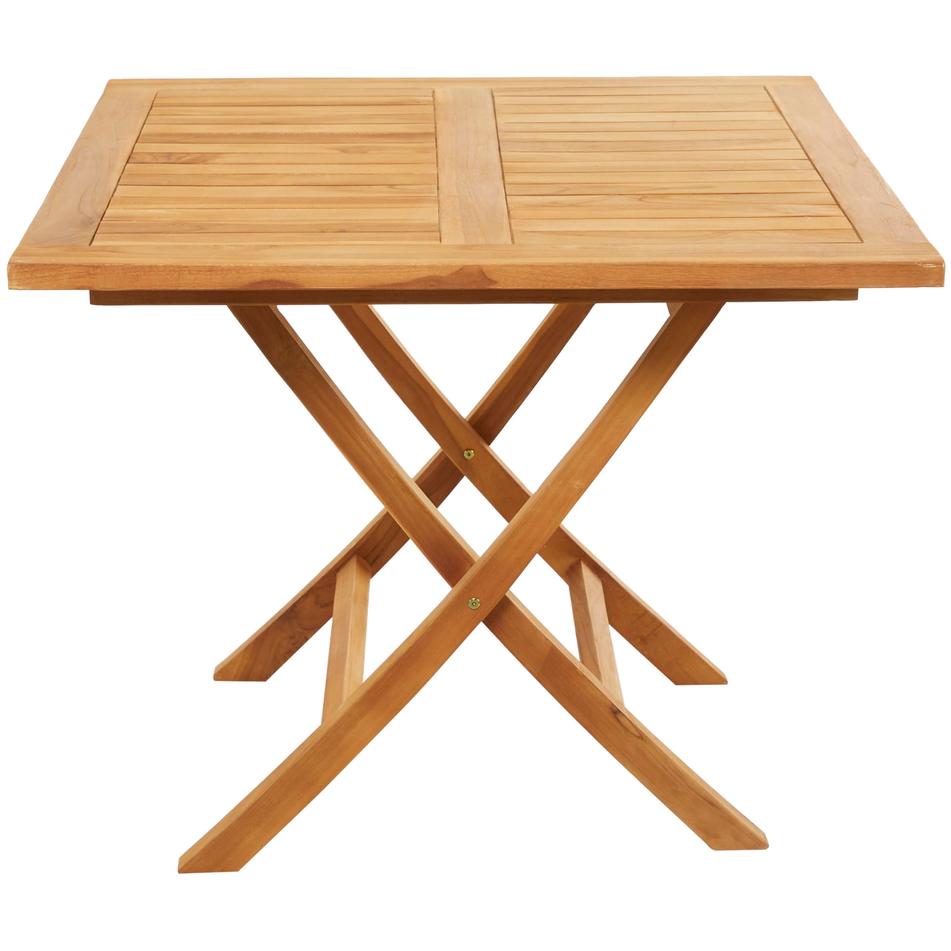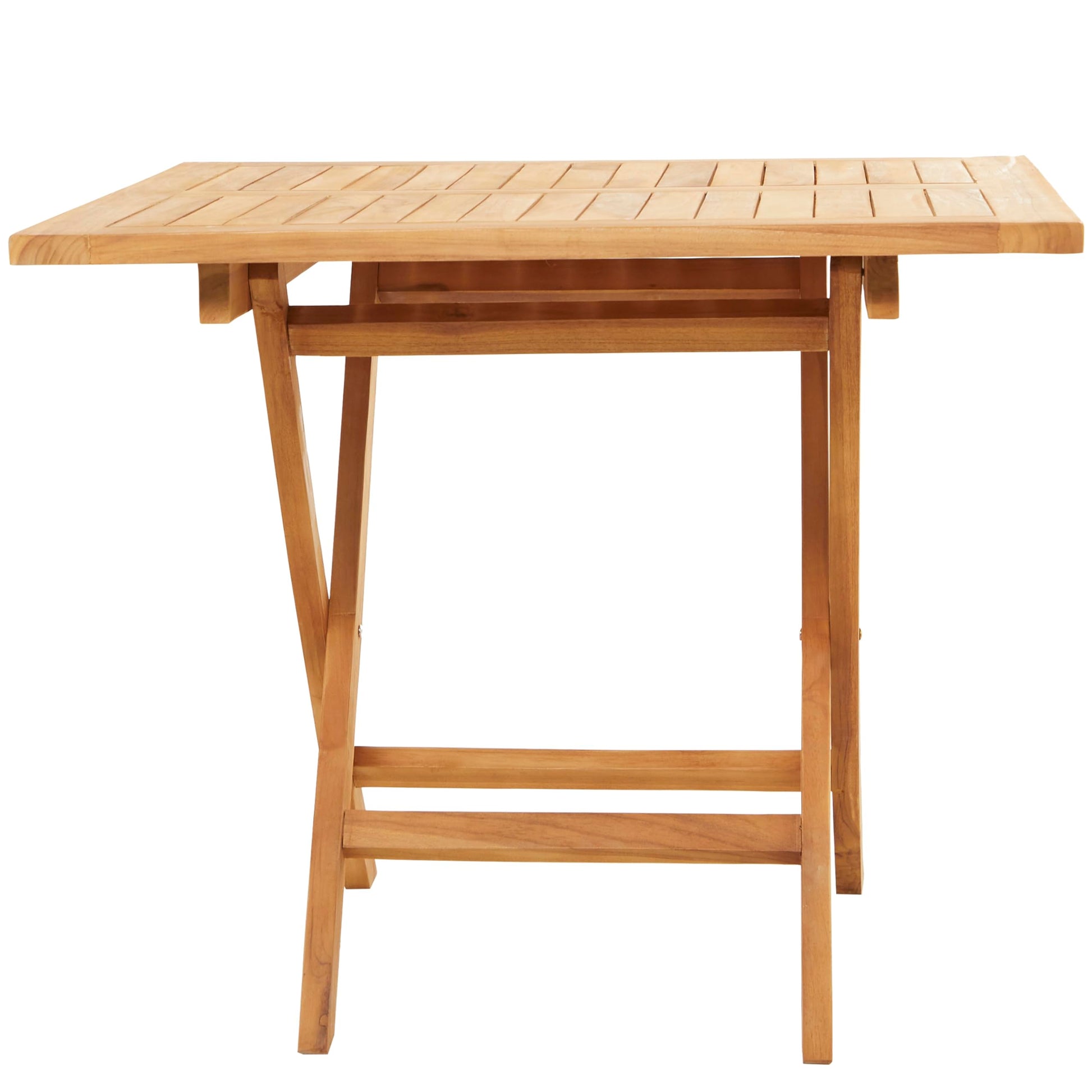 - FEATURES SQUARE OUTDOOR DINING TABLE Traditional style teak folding table features folding leg stand built in a seamless profile with slatted design and x frame structure for durable form