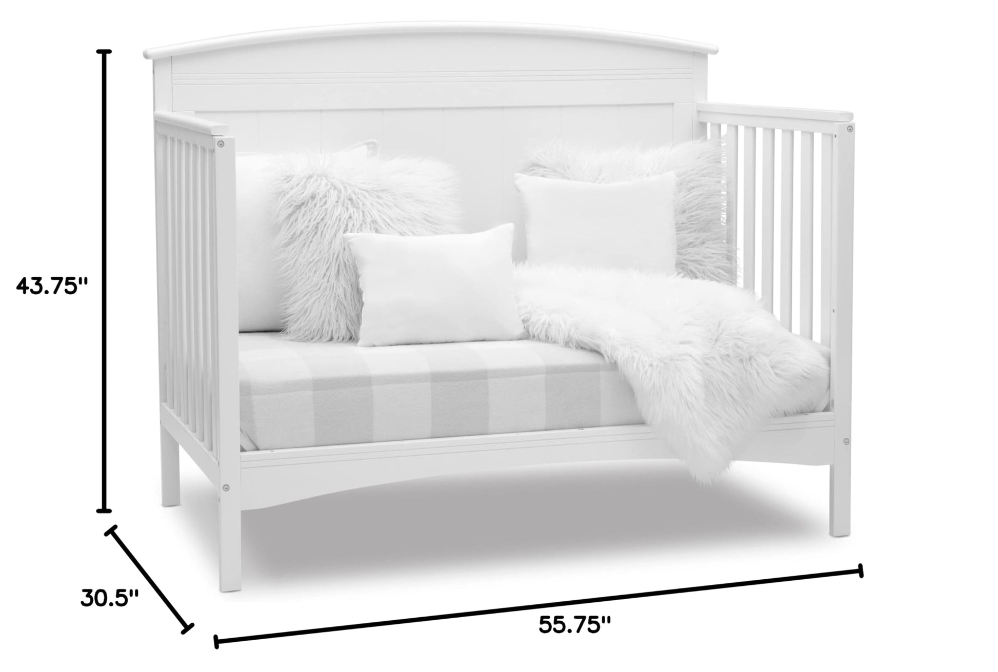 - SIZE: 55.75”W x 30.50”D x 43.75”H Fits standard size crib mattress (sold separately) Cuna para bebé que se convierte en una cama para niño/niña, sofá cama y cama de tamaño completo