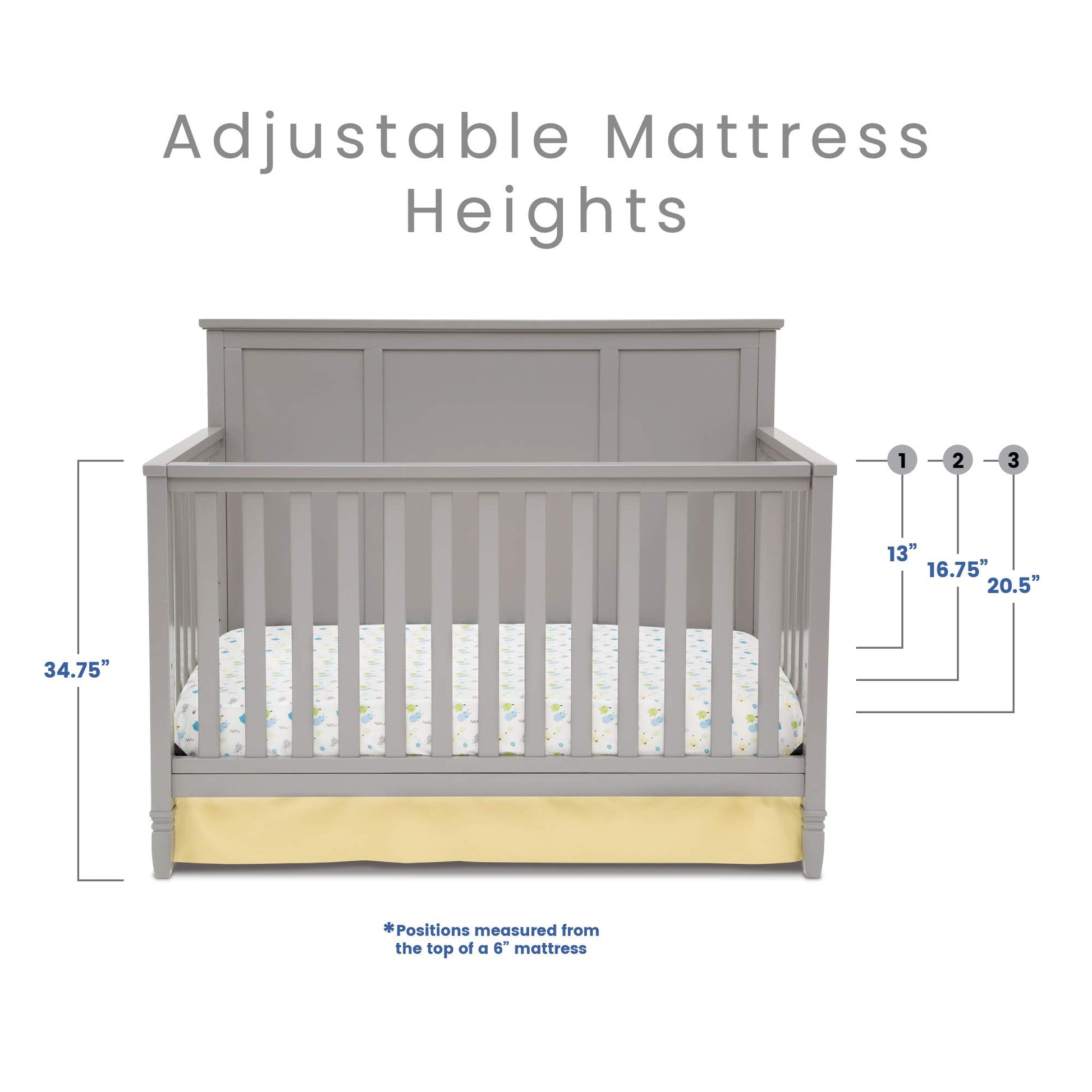 - GROWS WITH BABY: The 3 position mattress height adjustment on this crib allows you to lower the mattress as your baby begins to sit or stand