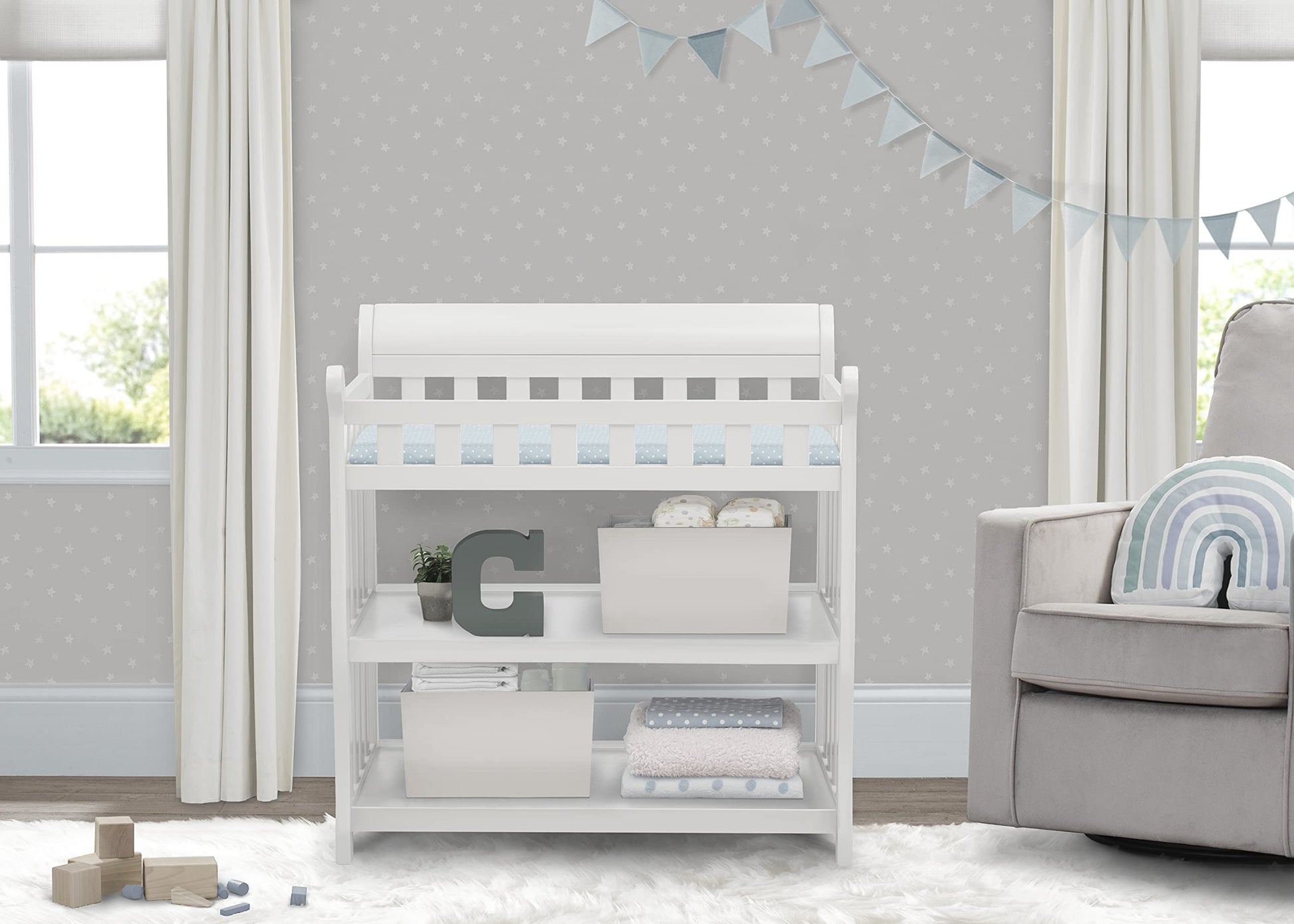 - Includes changing pad; Some assembly required