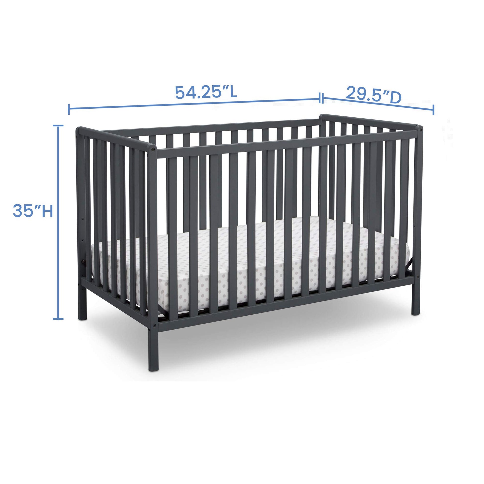 - SIZE: 54.25 inches W x 29.50 inches D x 35 inches H; Fits standard size crib mattress (sold separately); Cuna para bebé que se convierte en una cama para niño/niña, sofá cama y cama de tamaño completo